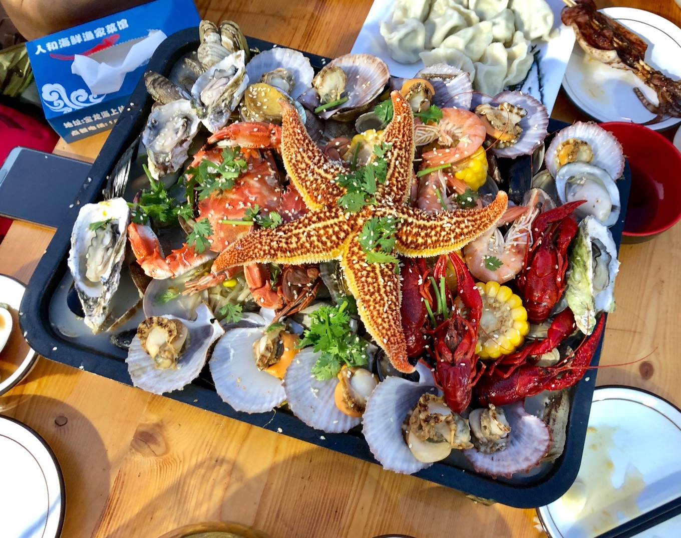 噔噔噔噔~~重頭戲來了!這個是海鮮小咖,我們就四個人吃不了大咖,這個份量就已經(jīng)非常足了!而且我是第一次吃海星,感覺好棒,味道有點淡淡的甜,肉有點沙沙的像魚子,總之口感特別好!