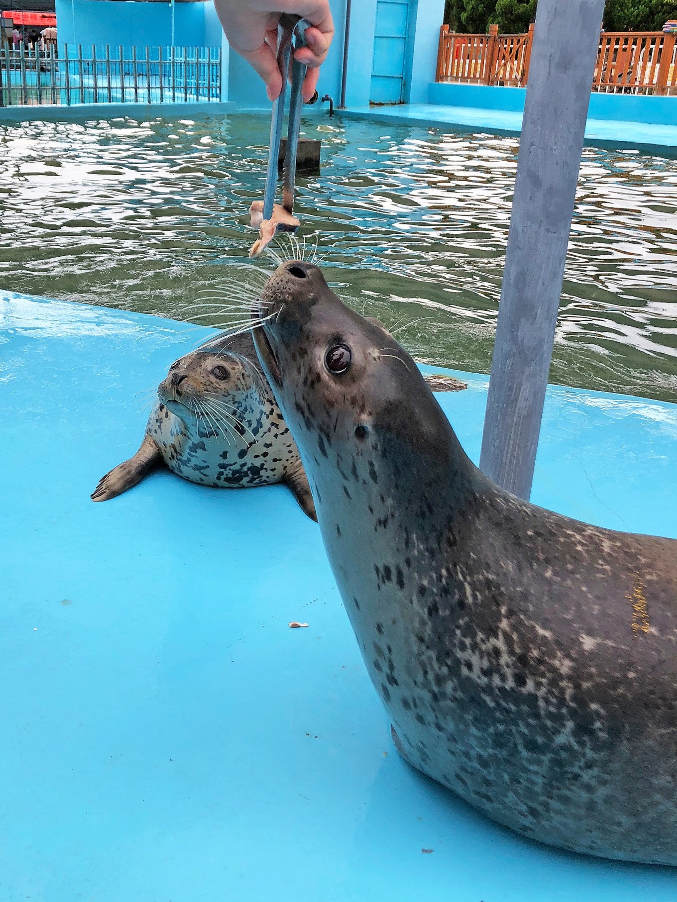 今天能見度不好,人也多,在海邊呆了會就來看海豹了~肥肥的好可愛!還特別會擺POSE~