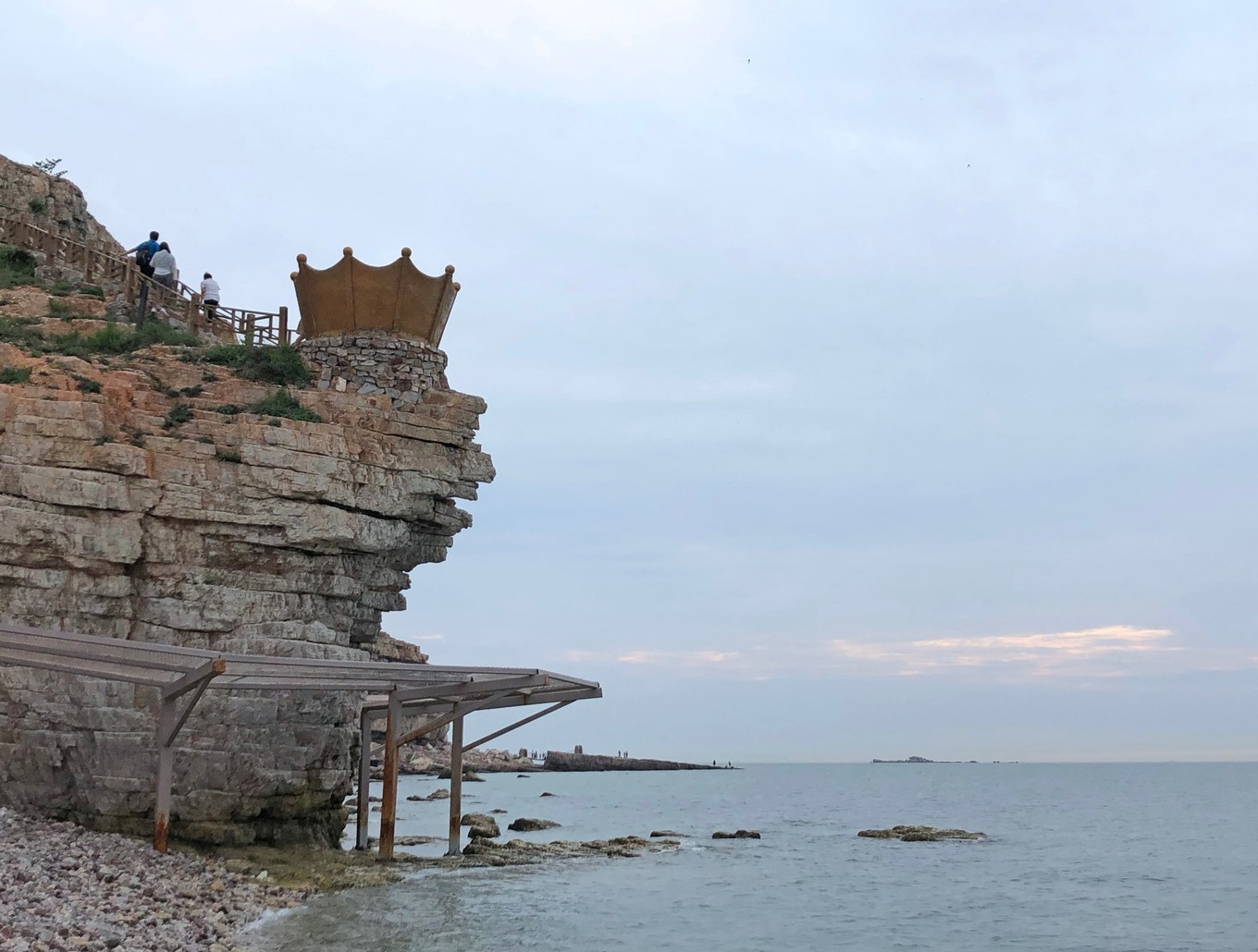 晚餐的地方離海邊很近,于是我們又一次來到了海邊吹吹海風(fēng)遛遛彎,這次是開車過來的,在八仙過海景區(qū)旁邊有一大溜停車場,還有一些小商販在那賣貨。