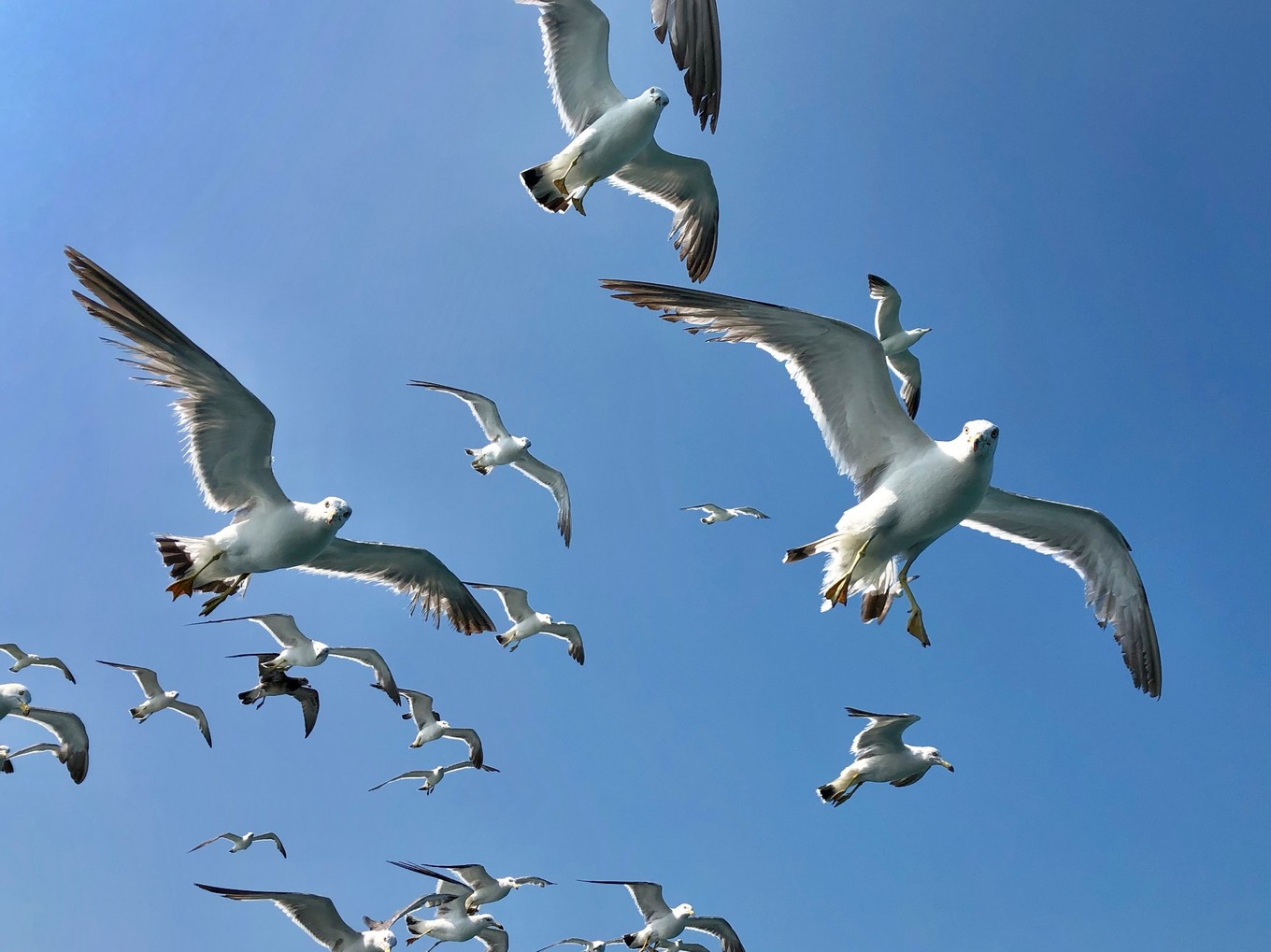之前據(jù)說在游覽過程中可以喂海鷗,于是我們都提前買了火腿腸,看到海鷗就拋向空中,它們就一路嗷嗷叫著追著我們捕食,太有意思了~