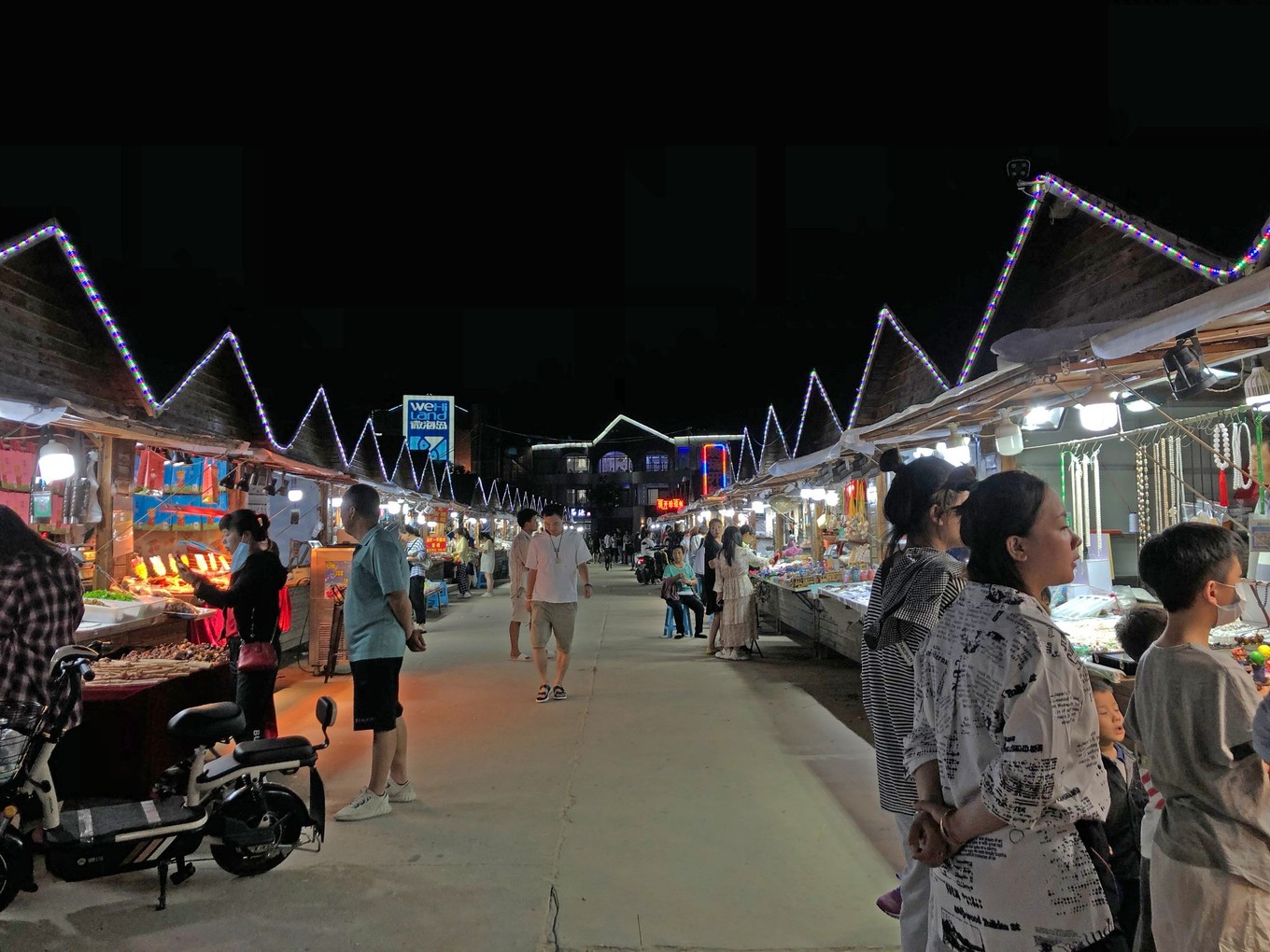 這個夜市有兩排,里面有賣各種特產(chǎn)、干貨的,還玩具、裝飾品啥的,人頭攢動好不熱鬧。