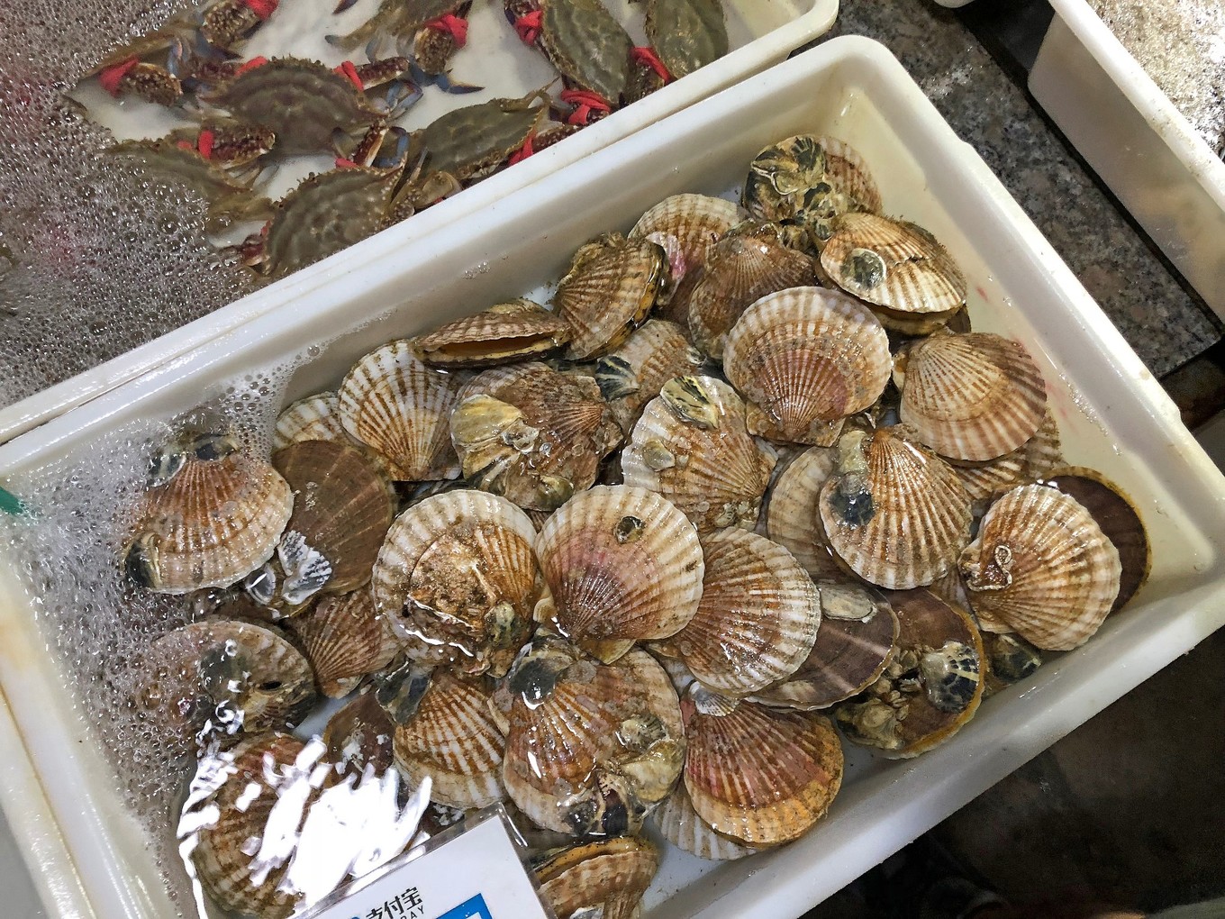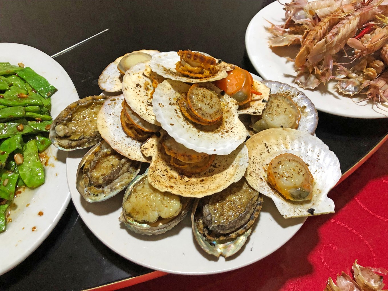 鮑魚約10塊/個,扇貝約8塊/個,皮皮蝦30/斤。買了4個鮑魚,10個扇貝,10多個皮皮蝦,總共花了155元。在沒開海的時節(jié),這個價位也還行吧!