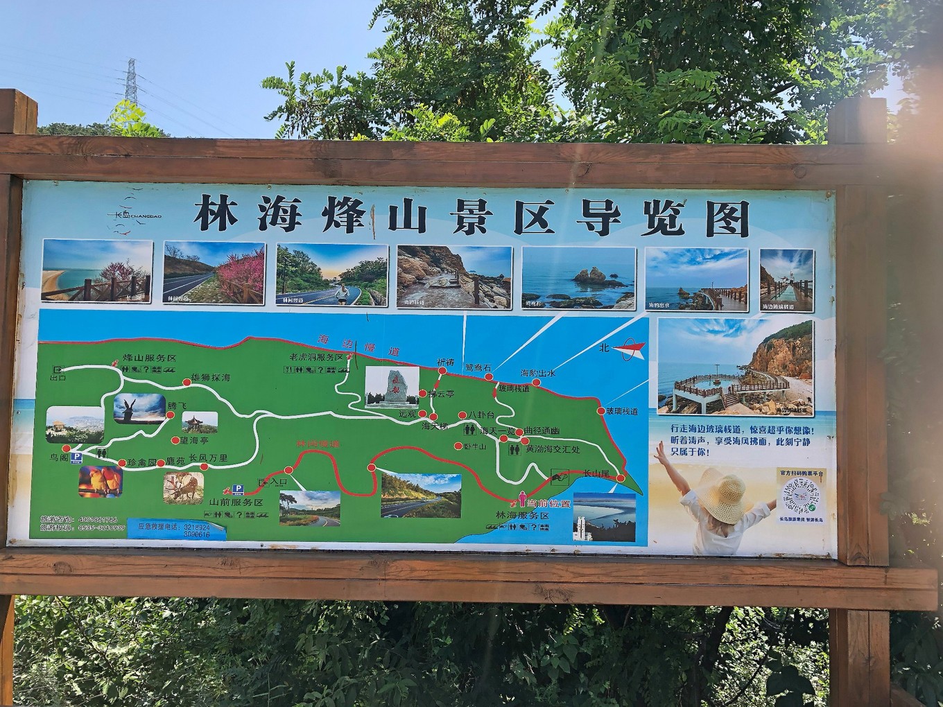 游覽林海峰山大約用了1個半小時左右,其實如果想省力的話可以坐車直接到峰山的黃渤海交界處附近,玩完再下山去林海公園,走沿海路線就輕松多了,我們這次沒有經(jīng)驗,先去的林海再爬山老人就有點吃力了。