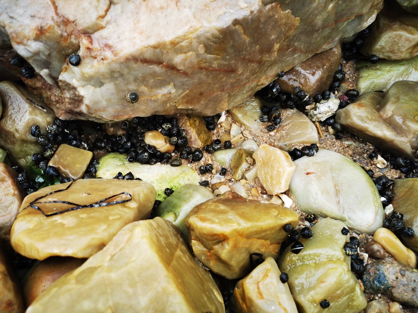 在有多海螺的地方基本就是螃蟹窩,翻開一塊石頭,能看到幾只螃蟹四處逃竄