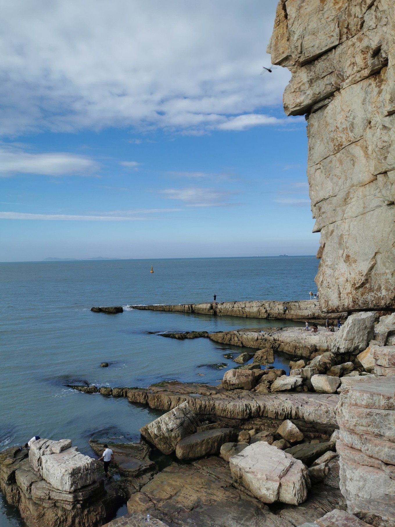 游玩九丈崖,給漁家樂老板打電話來接,送到月牙灣。如果要是體力好,沿著海岸線可以直接到達(dá)。