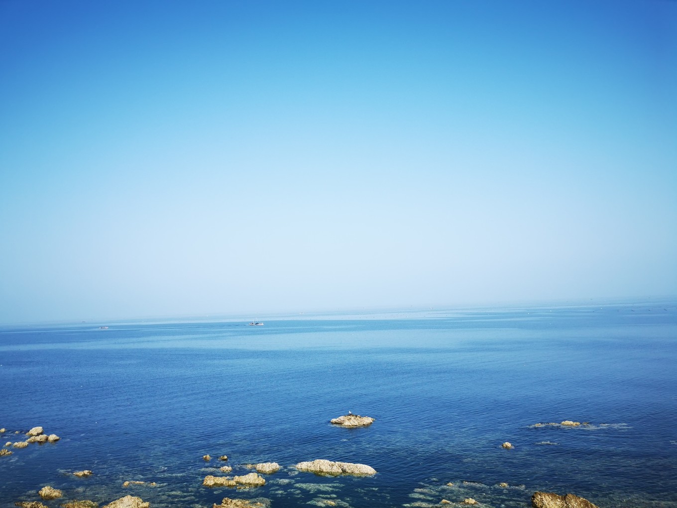 海平面與藍(lán)天融為一體,遠(yuǎn)遠(yuǎn)望去,分不清哪是藍(lán)的天還是藍(lán)的海