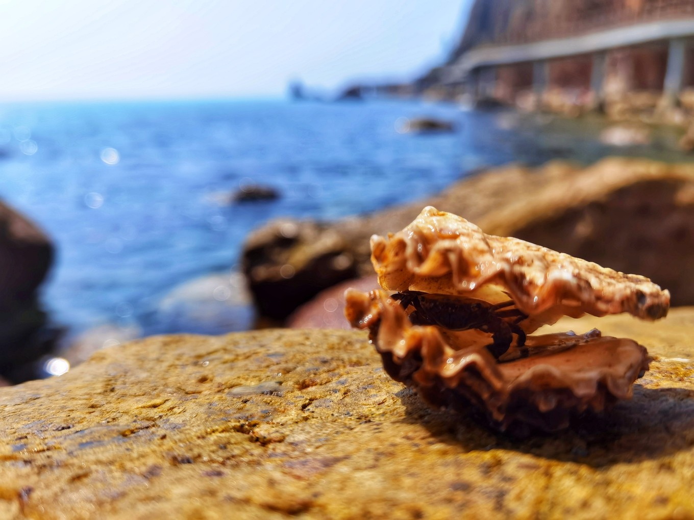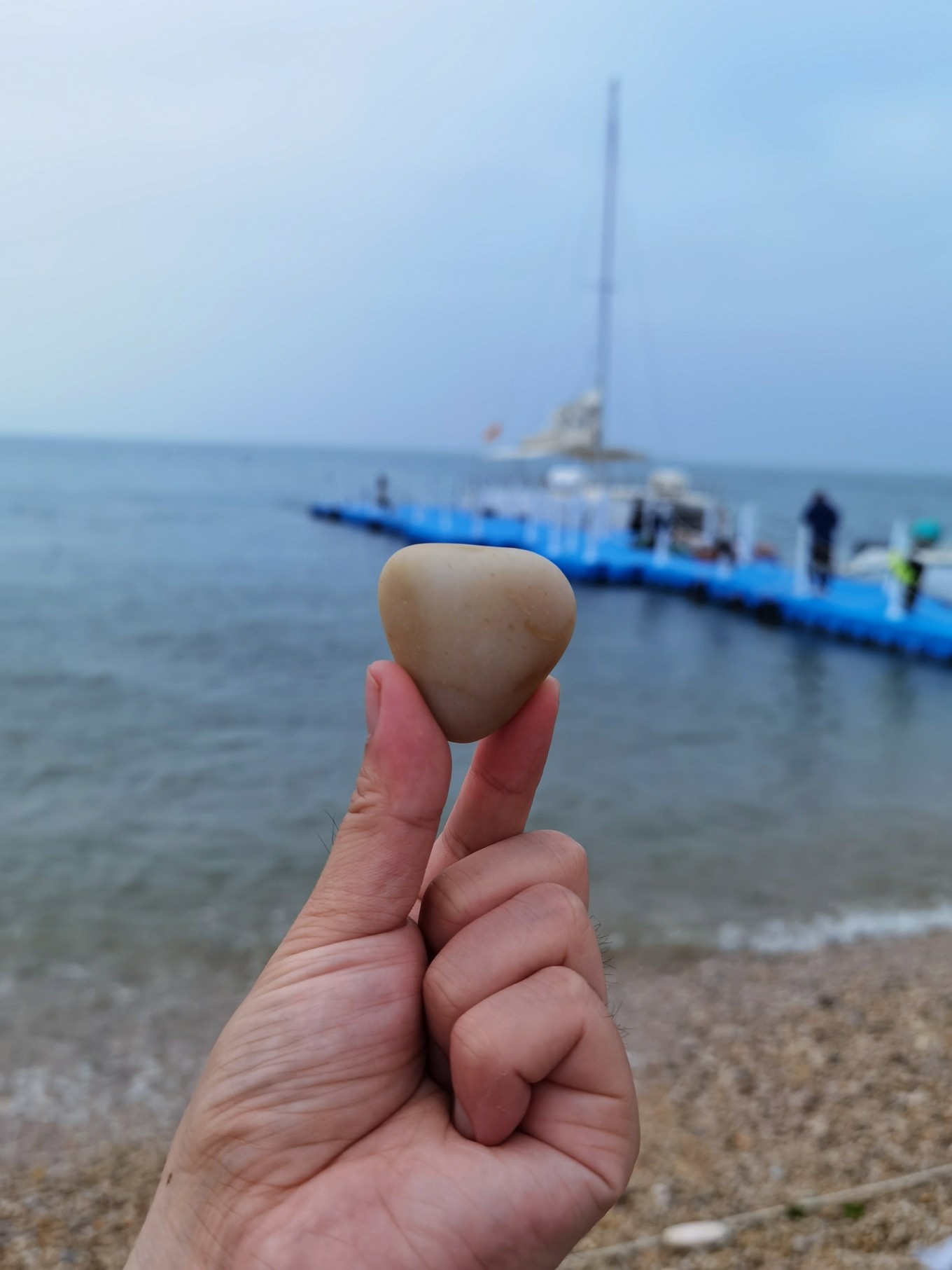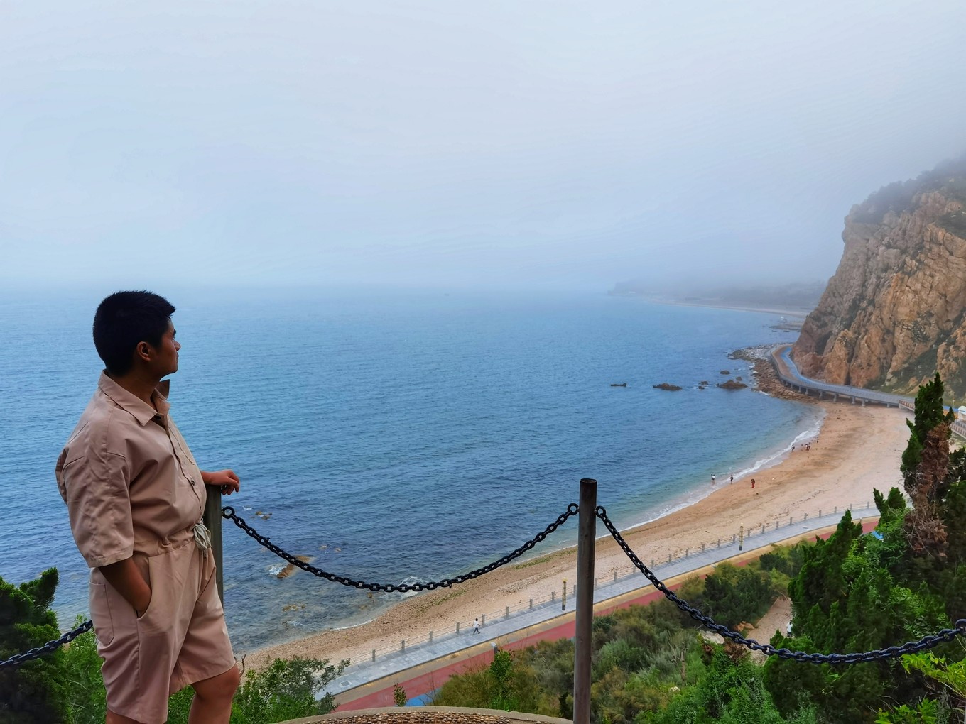 舟車勞頓,第一餐就近選擇一家飯館,但撲面而來的海膽和大蝦的腥味讓眾人都食之無味,這也直接促成了我們后面頓頓自己做飯的決心!一番小憩后開啟長島景點(diǎn)打卡之旅,第一站就是最知名的月亮灣和九丈崖,但因天氣陰沉,景色也大打折扣,所謂的月亮灣最大特色就是球形卵石,我撿到了好幾顆心形石頭!