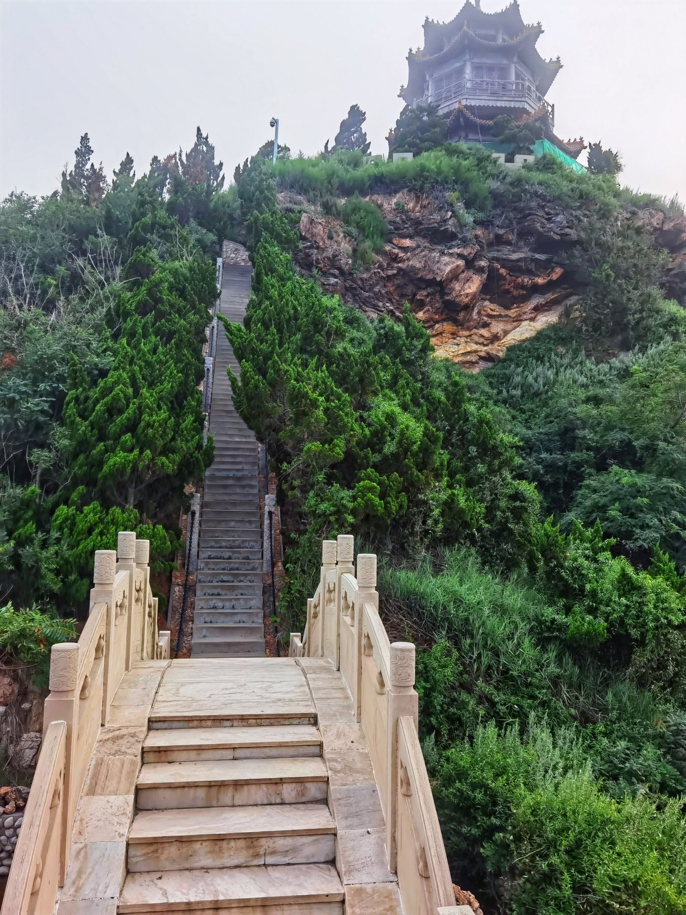 行程第三天我們的目的地是峰山林海,先是登頂烽山眺望整個長島,難怪古語有云登高望遠(yuǎn),人在高處鳥瞰眼底林林總總,頓覺豁然!