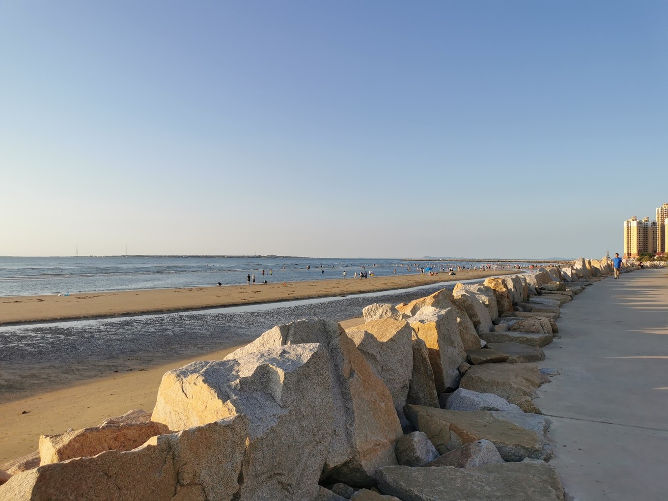 夏天是龍口一年中最熱鬧的時(shí)節(jié),隨著近年來(lái)在此購(gòu)置暑假小屋(summer house的簡(jiǎn)陋翻譯)的人多了,網(wǎng)上的攻略也很多,我們都對(duì)人文景點(diǎn)(如南山大佛、丁氏莊園)的興趣不大,僅游玩了東海黃金海灘和桑島。東海黃金浴場(chǎng)無(wú)需消費(fèi),沙子細(xì)膩、海水溫暖、風(fēng)平浪靜,是非常優(yōu)質(zhì)的海濱浴場(chǎng)。