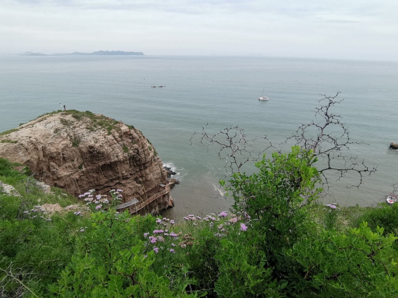 我們?cè)陂L(zhǎng)島住了2晚,游玩時(shí)間非常充足。登島的當(dāng)天下午去了月牙灣和九丈崖。月牙灣是一個(gè)鵝卵石海濱浴場(chǎng),不下海的話半小時(shí)海邊溜達(dá)溜達(dá)足矣,整體感覺(jué)就是略硌腳。九丈崖是看日落的好地點(diǎn),無(wú)奈天公不作美。我們覺(jué)得九丈崖是島上最美的一處景點(diǎn),上山下海,內(nèi)容很豐富,游玩時(shí)間2-3小時(shí)。