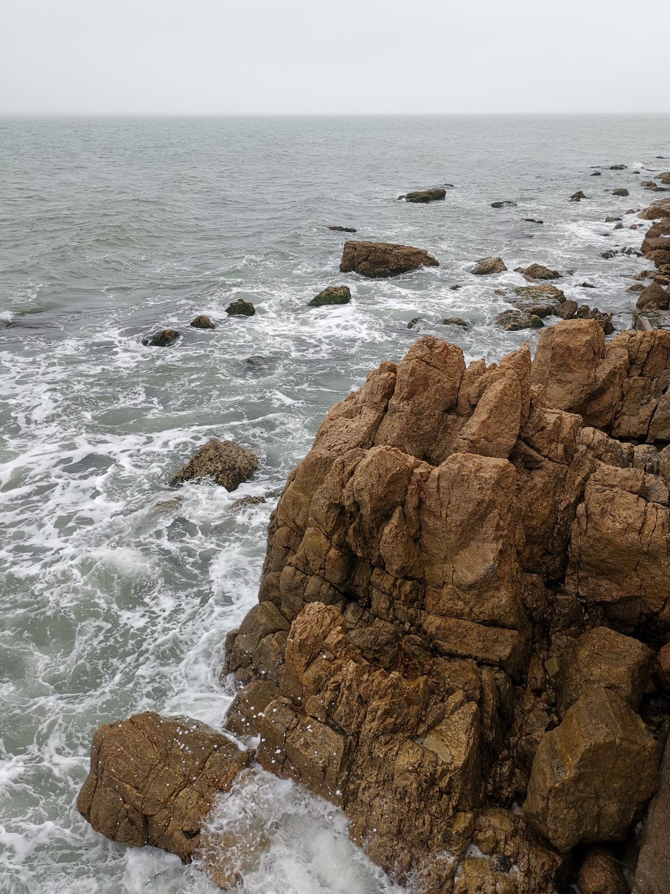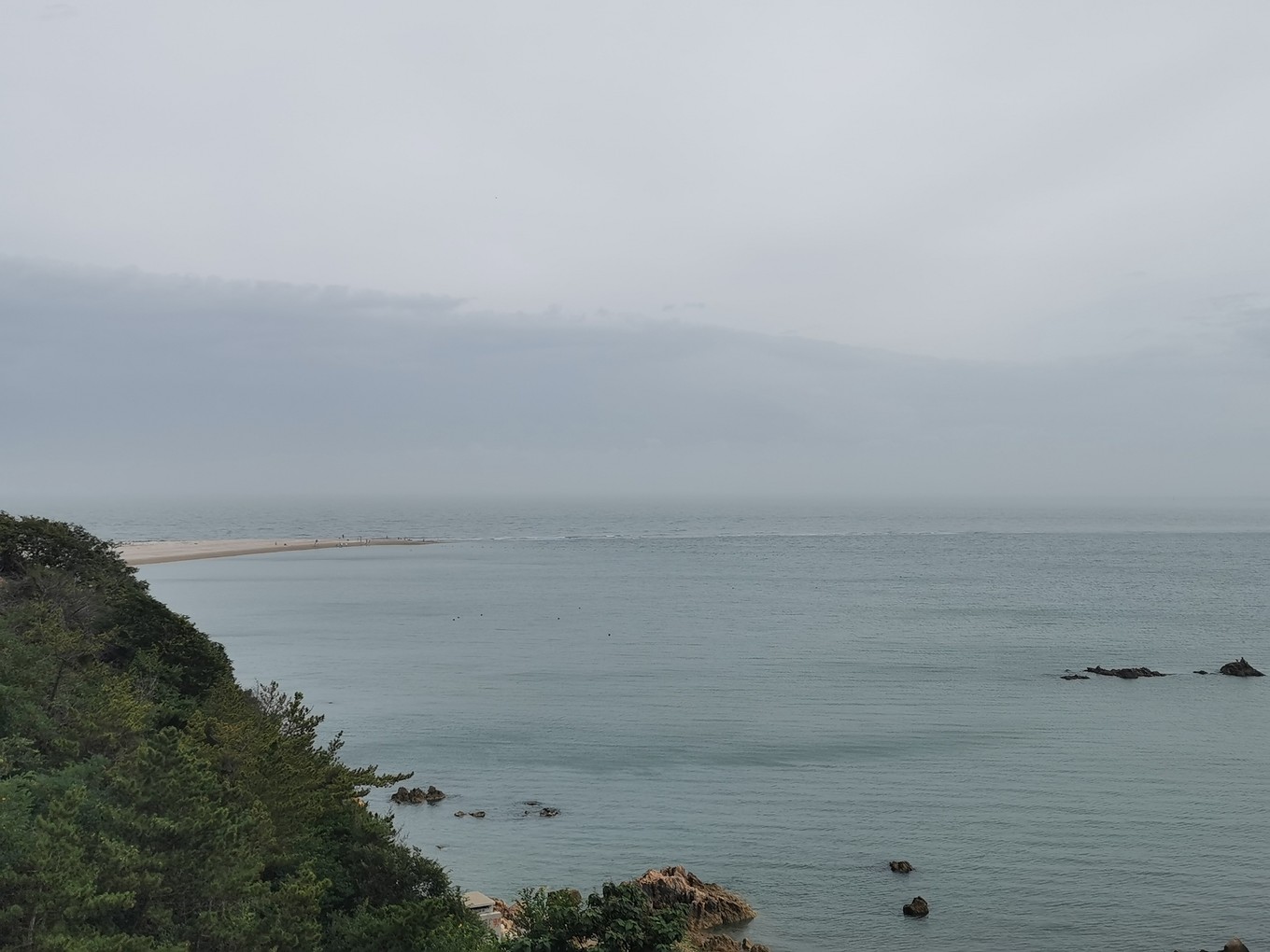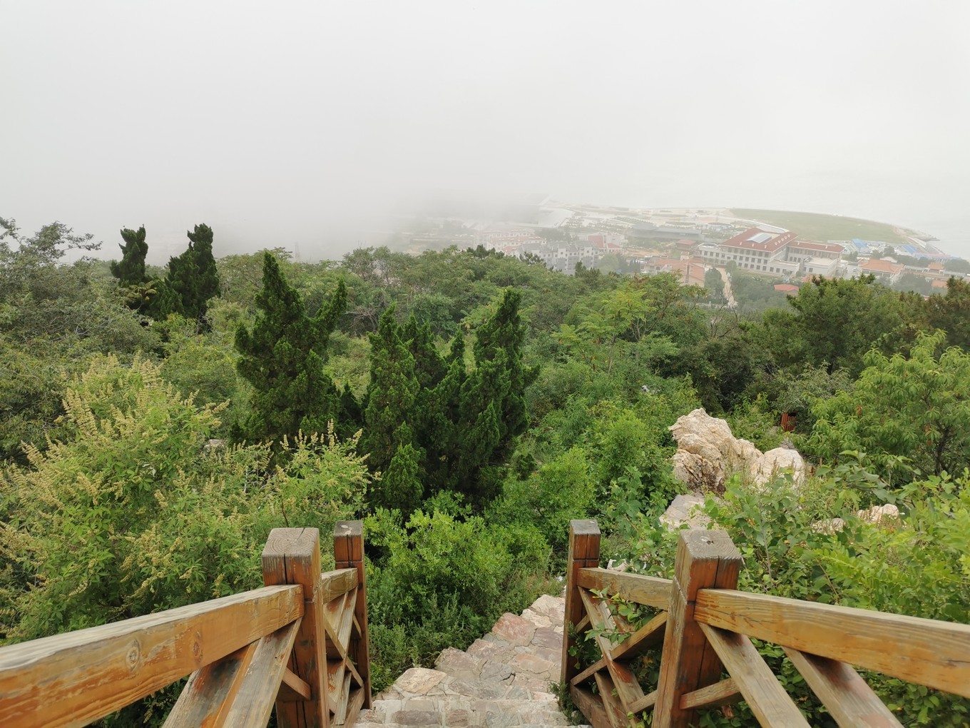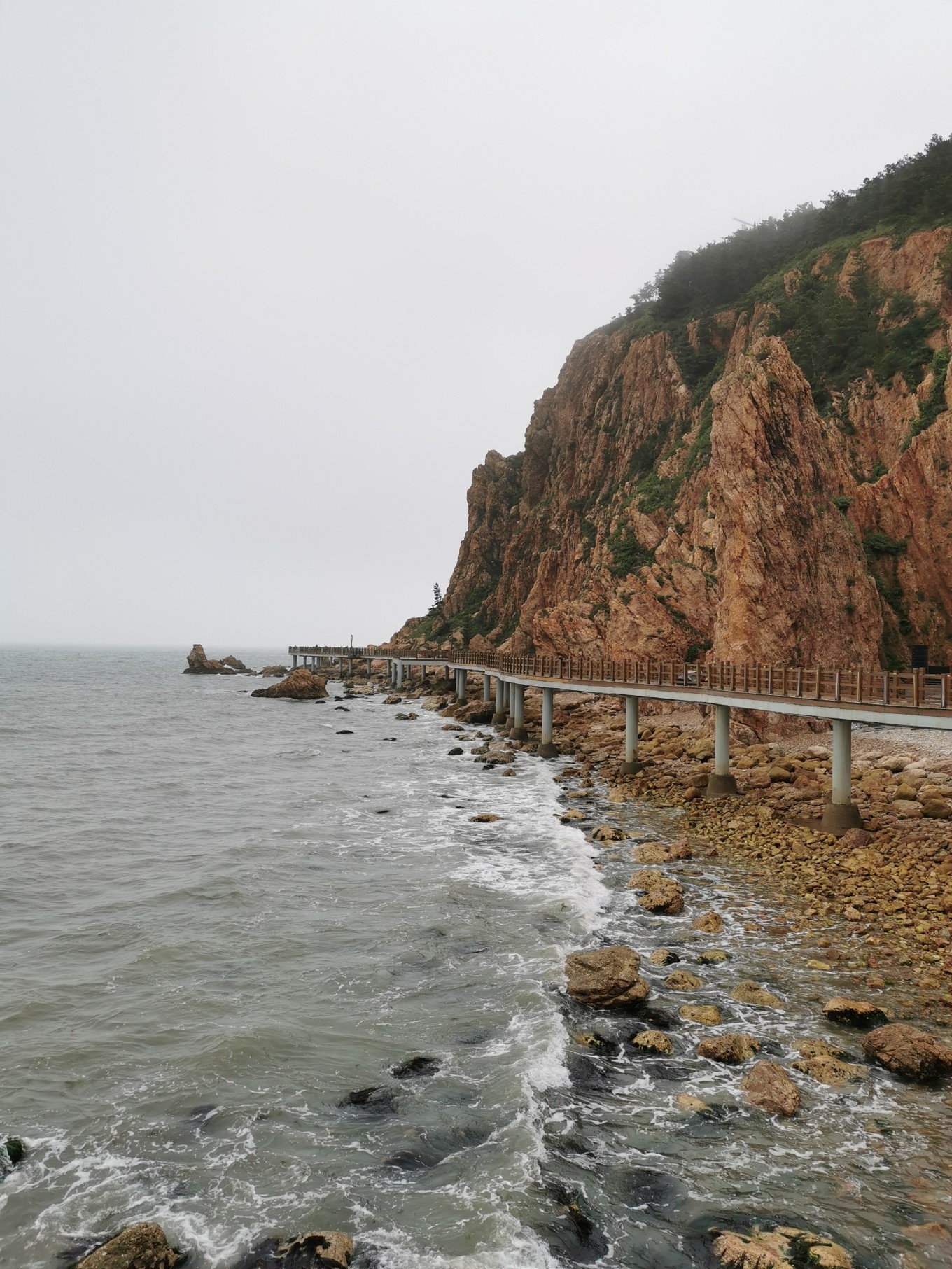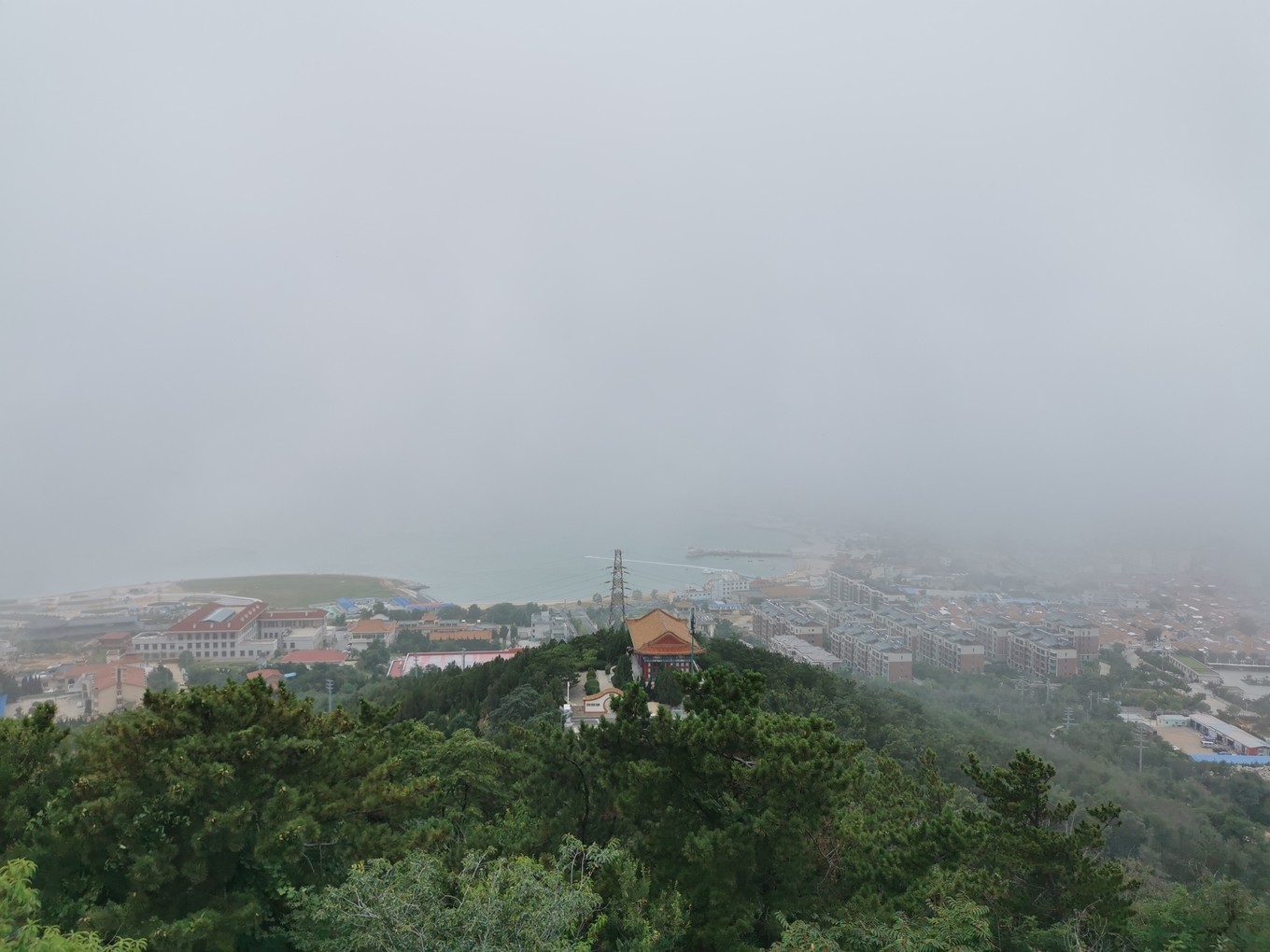 下午打卡烽山?林海。烽山和林海其實(shí)是兩個(gè)景點(diǎn),相隔還是比較遠(yuǎn)的,建議乘坐景區(qū)內(nèi)環(huán)保車(chē),35元/人,??空军c(diǎn)為:入園處-烽山-黃渤海分界線-長(zhǎng)島尾-出園,用時(shí)約3小時(shí)。當(dāng)時(shí)的天氣真的是一言難盡,爬上烽山只能看到霧氣騰騰,黃渤海S型的分界線不知了去向。