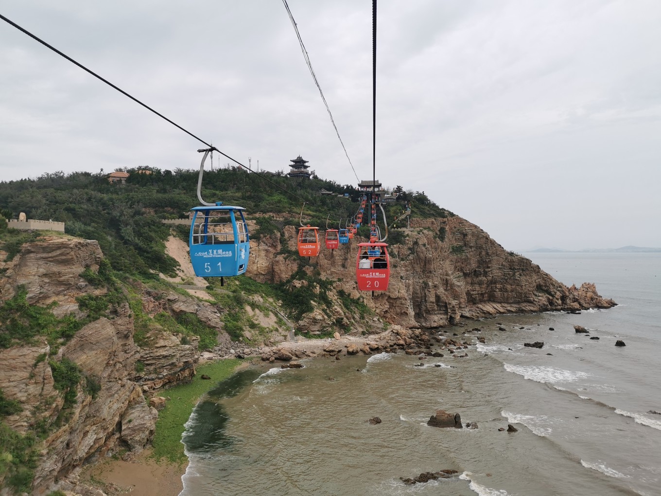 蓬萊閣門(mén)票可以在公眾號(hào)“蓬萊閣景區(qū)管理中心”購(gòu)買(mǎi),50元/人,兩天內(nèi)有效,酒店一般都有購(gòu)票優(yōu)惠碼48元/人,半天時(shí)間游玩足夠了,從東門(mén)進(jìn)-參觀東炮臺(tái)-古建筑群后出來(lái),乘海上纜車(chē)去橫田看看(纜車(chē)另收費(fèi),單程30/人,往返50/人),回來(lái)之后對(duì)博物館感興趣的可以一路參觀登州和古船博物館,我倆因?yàn)閷?duì)博物館無(wú)感,就直接跳過(guò)了。