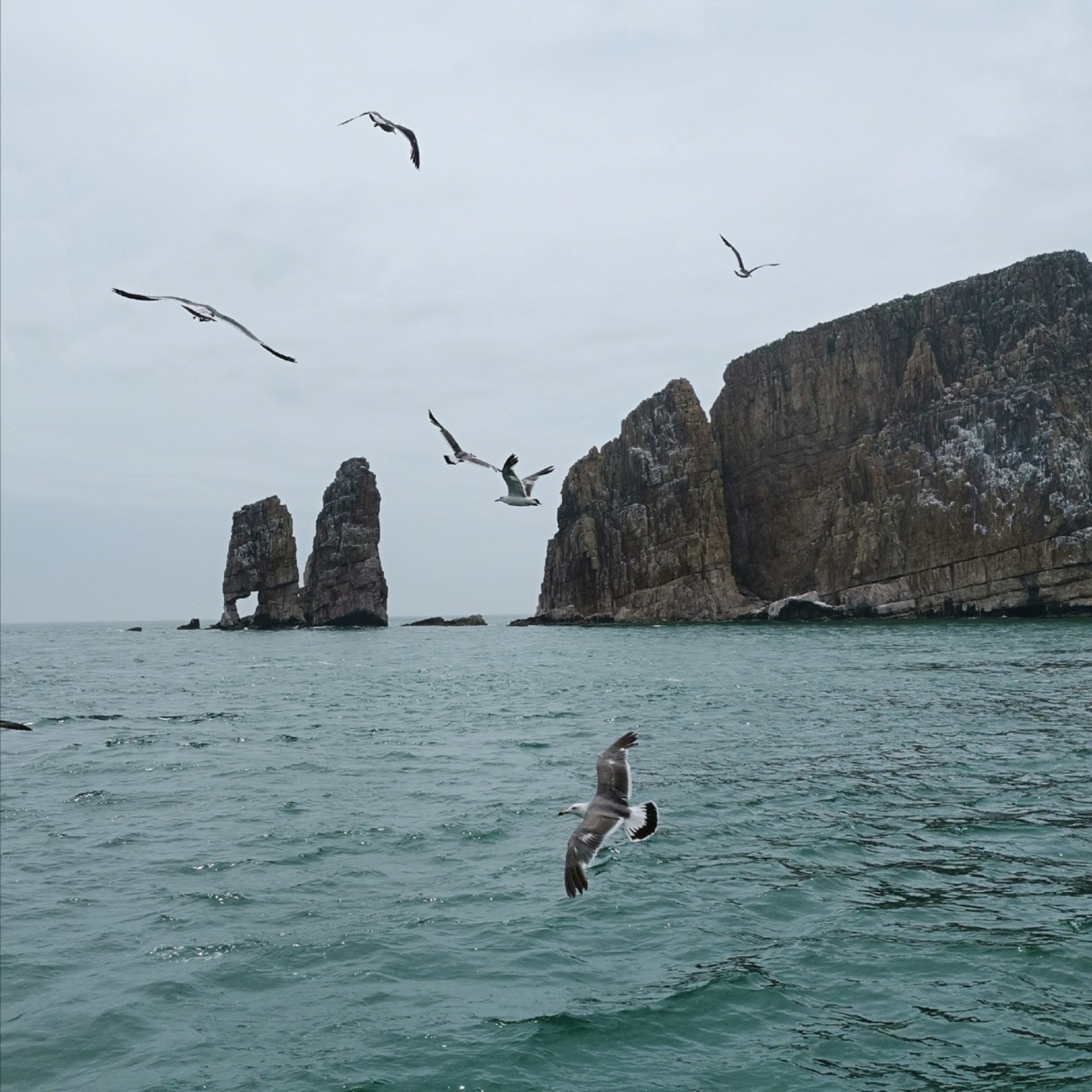 第二天上午我們出海去了萬(wàn)鳥(niǎo)島,“長(zhǎng)島船票”有每天的航班信息,優(yōu)惠票價(jià)180元/人,我們是包車(chē)師傅提供的船票,150元/人。萬(wàn)鳥(niǎo)島顧名思義主要是觀鳥(niǎo)了,全程約3個(gè)半小時(shí)。海上還是蠻涼的,薄外套一定要記得帶,不要問(wèn)我是怎么知道的,凍得瑟瑟發(fā)抖的我倆只能抱團(tuán)取暖。因?yàn)槲覀儠r(shí)間寬裕,包車(chē)師傅有推薦我們?nèi)ゴ蠛趰u,為了讓稍有暈船的老伙伴免遭折磨,我們猶豫再三還是放棄了。