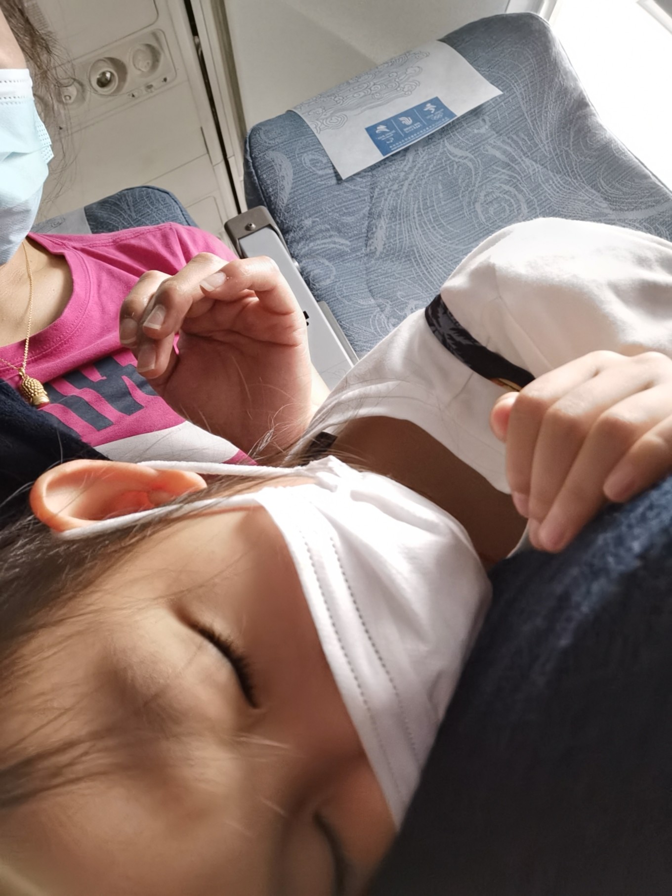 出行:飛機每個人都帶好口罩,阻擋不住透娃們的開心,不停的去探索,看看路過的云朵??說著他們的形狀,好想在云朵里跑一跑