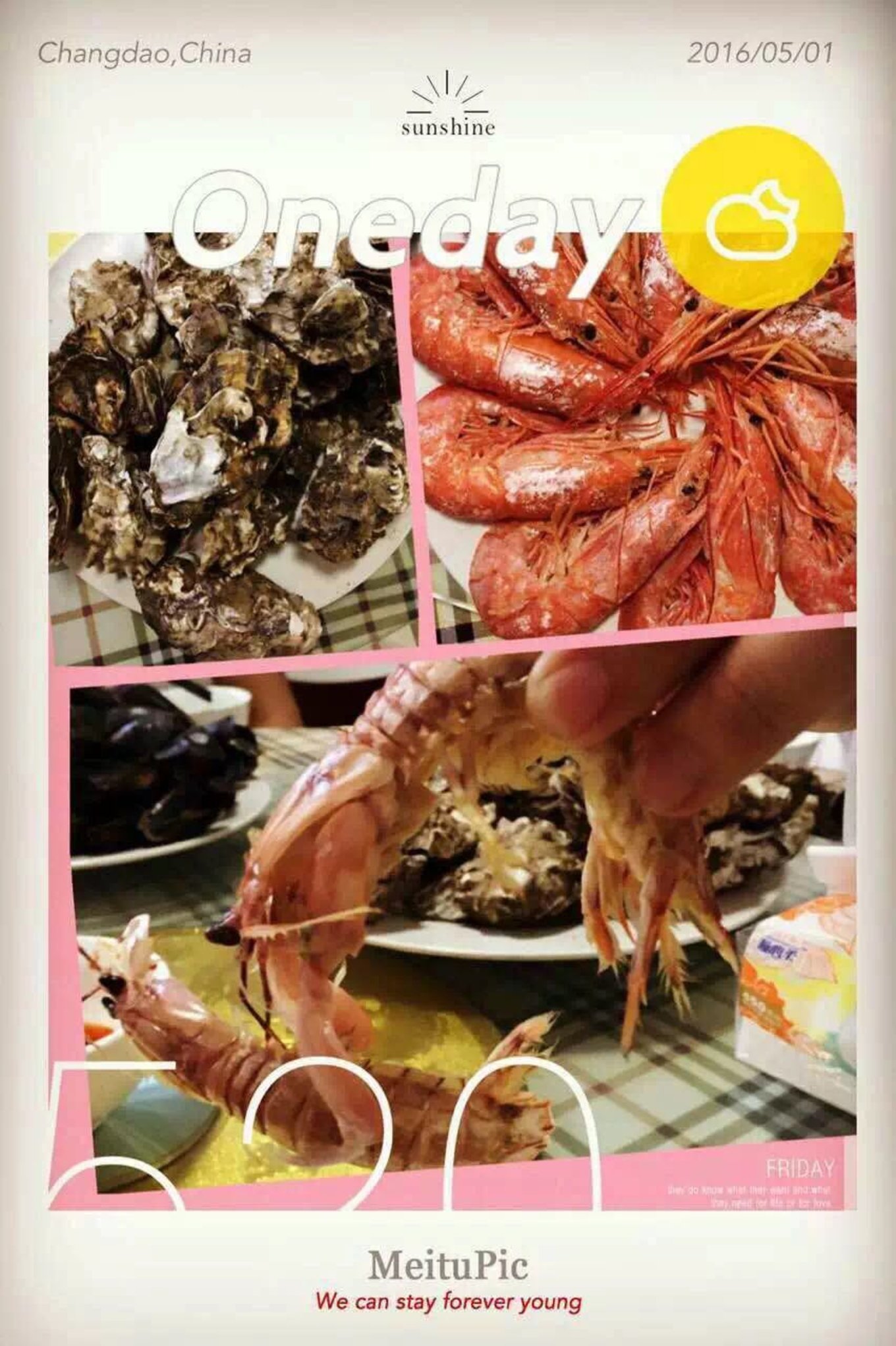 5月1日,經(jīng)過(guò)了“搖籃”里一晚上的搖晃,終于到達(dá)了長(zhǎng)島,等待我們的不是溫暖的床,而是漁家老板為我們準(zhǔn)備的超級(jí)豐盛的海鮮大餐。當(dāng)時(shí)心里想的是,我明明想要的是小米,你卻給了我蘋果。圍著飯桌坐下來(lái),看著一盤盤不知名的海鮮,饑腸轆轆,心里竊喜,還是蘋果好嘛,嘿嘿。