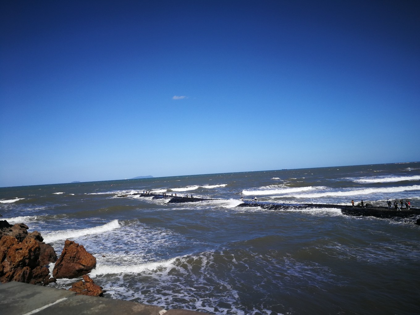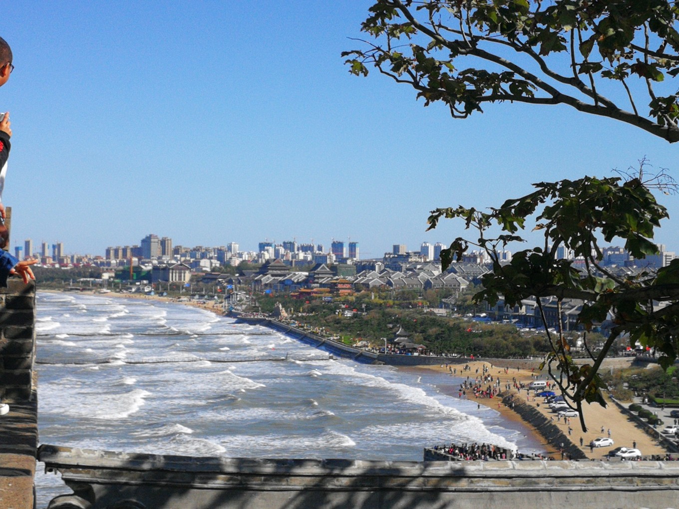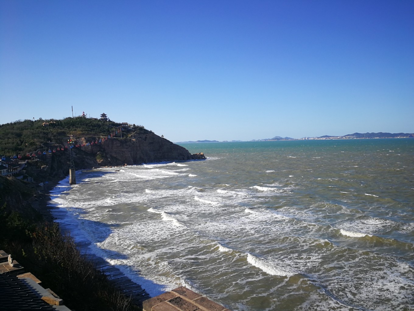 D2 :10月4日,第一次見到了白天的煙臺海邊,一下子興奮了,爬到了觀景臺(真冷