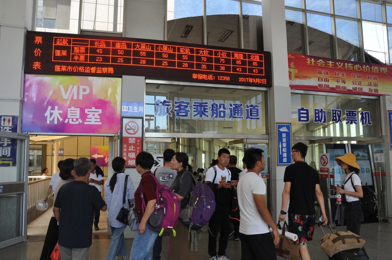 1、抵達(dá)交通工具:目前去長(zhǎng)島只能通過輪渡,從煙臺(tái)蓬萊市的“煙臺(tái)蓬長(zhǎng)客港”坐船,7:30-18:00,每30分鐘一班次,流水發(fā)船。私家車是不能登島的。船票可以在現(xiàn)場(chǎng)買,價(jià)格是45元/人,保險(xiǎn)3元,合計(jì)48元/人。需要提前查好蓬萊的天氣,如果天氣不好,海浪過大,可能停運(yùn)。尤其是從長(zhǎng)島返回,要提前考慮天氣不好導(dǎo)致的返程延期。