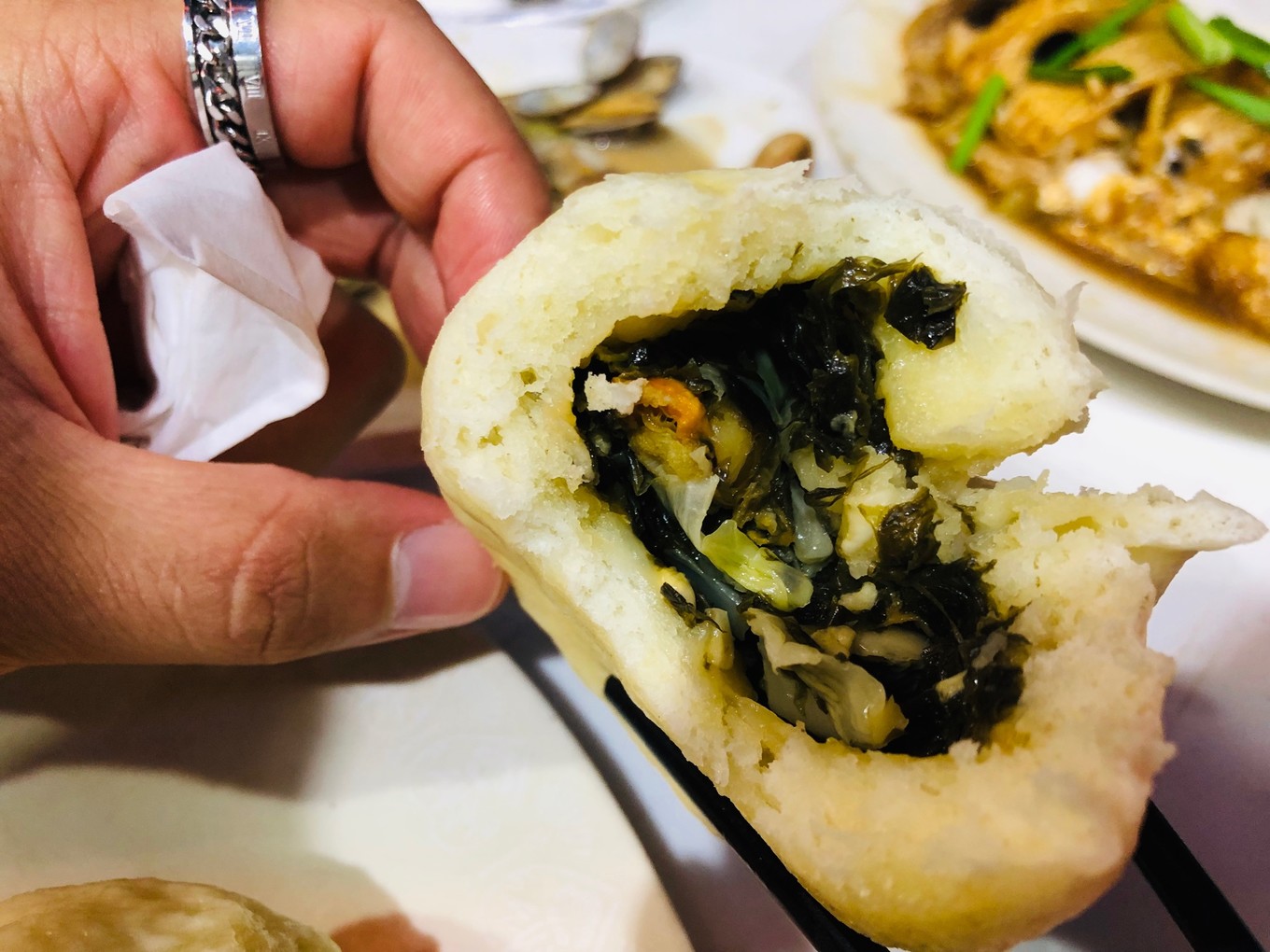 建議你點(diǎn)一下:海菜包子。這是膠東地區(qū)的特產(chǎn),而長(zhǎng)島的海菜包子,餡兒里除了海菜,還有扇貝、蝦蛤蜊等(各家做法不同,餡兒也不同),很有特色。