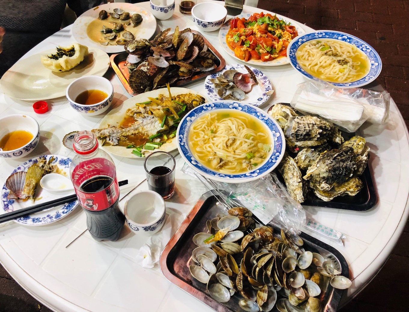 這家離著長(zhǎng)島港不遠(yuǎn)的海鮮居,還是不錯(cuò)的,筆者從大眾點(diǎn)評(píng)上點(diǎn)了118的套餐,包含了1份原汁扇貝、1份原汁生蠔、1份花蛤、1份黃花魚/石斑魚、海鮮面(按人頭算,最多4份)、1份西紅柿炒蛋。真的還挺豐盛的。