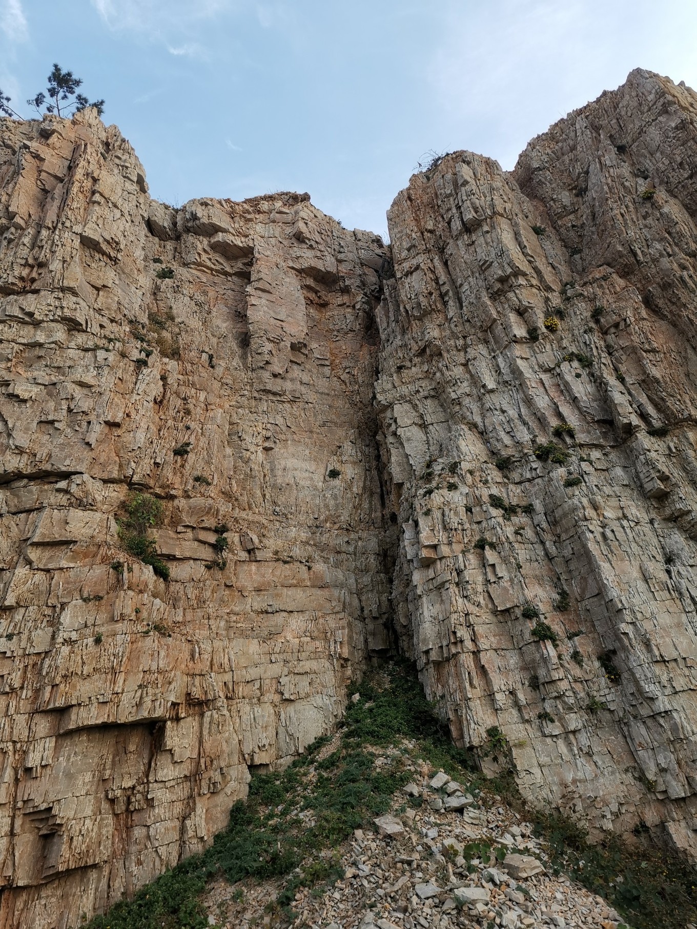 長長的木棧道,親海而建,在峭壁上的伊人冠,是絕佳的觀景臺。九丈崖因崖高且險而得名,因為海蝕作用,崖壁直立呈90度,堪稱國內海邊獨一無二的景觀。仰望絕壁萬丈,不由得感慨大自然的神工。