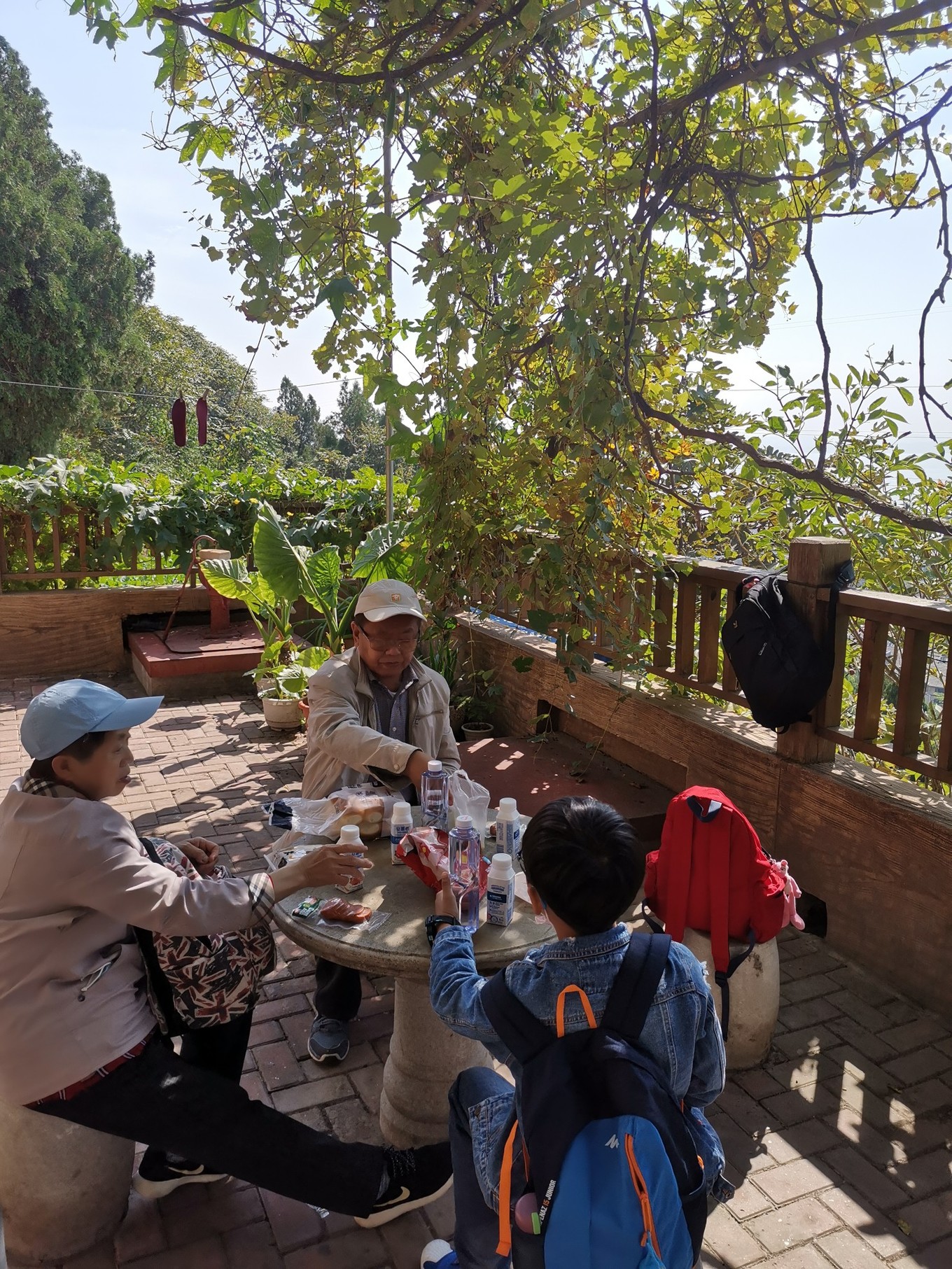 最巧妙的是山頂午餐,自備的面包牛奶和各種零食,因為快樂也成了美味。圍坐在石桌椅前,有藤蔓半遮著陽光,尋找美好變得如此簡單。