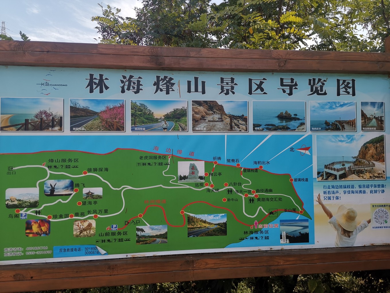 景點介紹說林海公園因廣闊的大海、茂密的森林而得名,位于長島最南端,依山就勢憑海而作,是“濃縮了的仙境,擴大了的盆景”,以黃渤海交匯處而聞名,和小朋友自拍一張吧。