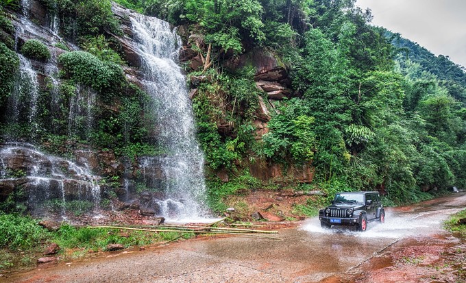 由黃荊開(kāi)始,沿一條峽谷中的小公路穿越四川與貴州的省界,沿途河谷兩岸的巖壁上,水以各種華麗的姿態(tài)從高處跌落,化作大小不一的瀑布,隨處可見(jiàn),目不暇接。有時(shí)公路干脆就從瀑布下方穿過(guò),淋的一車清爽。