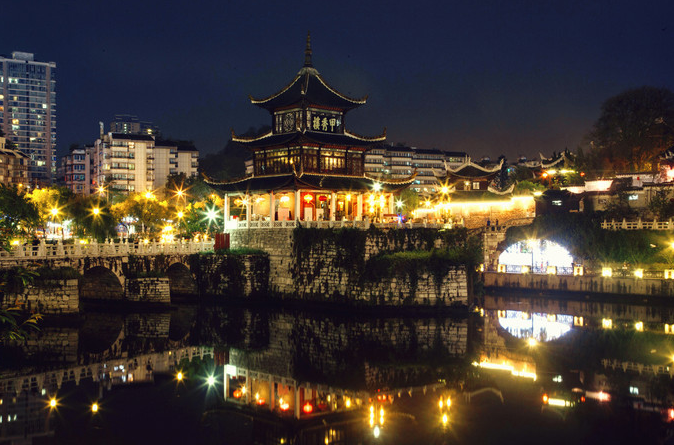 【甲秀樓】貴陽(yáng)地標(biāo)建筑,在南明河上,以河中一塊巨石為基而建,建筑朱梁碧瓦,四周水光山色,名實(shí)相符,堪稱甲秀。