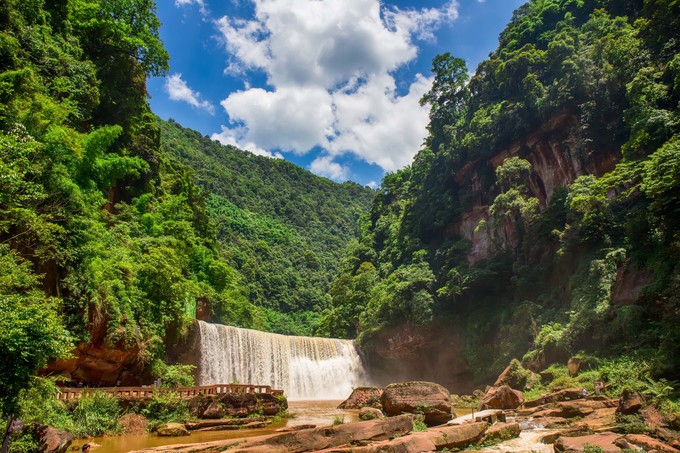 而進入貴州赤水境內,則是瀑布景觀最精華的部分。提到貴州的瀑布,名氣最大的必然是黃果樹大瀑布。而瀑寬瀑高與之相當的赤水十丈洞瀑布則低調太多。