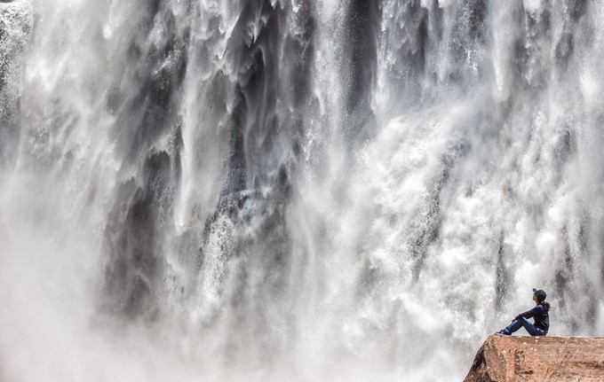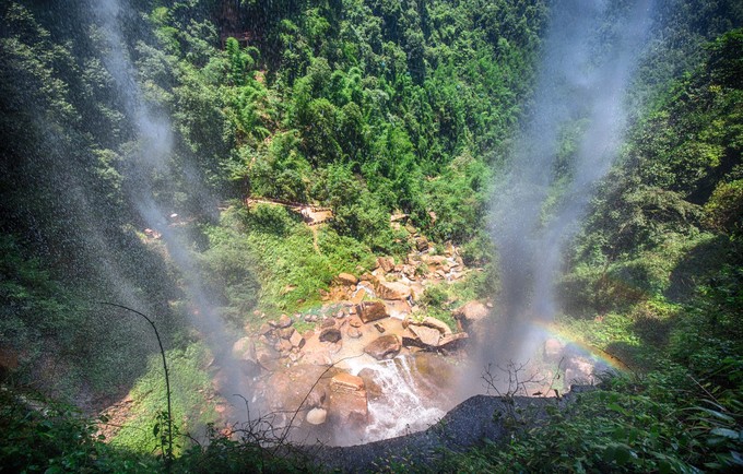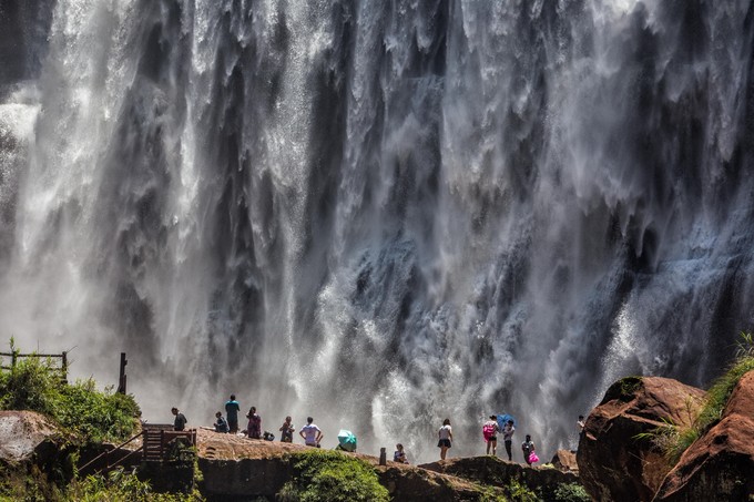 瀑布水潭邊有一塊巨石,可以爬上去近距離欣賞瀑布。但之前最好穿一件雨衣,否則猛烈的水霧會直接讓你“秒濕”。