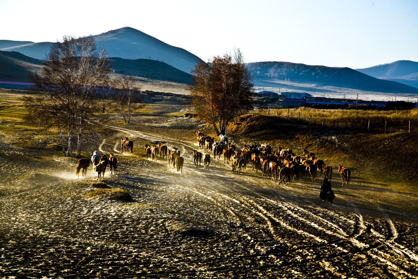 4、十月下旬以后,隨著北方強勁的寒流將壩上美麗的秋裝吹向無邊的天際,已脫盡葉子的白樺樹此時更顯得挺拔、雄偉。一夜風(fēng)雪,壩上又披上了公主般的銀裝。此時是拍攝草原雪景的最好時節(jié)。