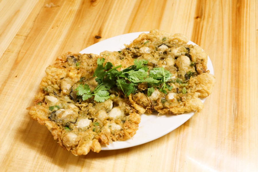 蠔烙是潮汕久負盛名的傳統(tǒng)民間小食,閩南地區(qū)叫“蚵仔煎”。制作方法是用地瓜粉溶于水,拌蔥粒,在一個平底的鐵鍋上煎,加上海蠣(潮語叫蠔),再下蛋花,取起即可蘸魚露或辣椒醬吃,非常地道。