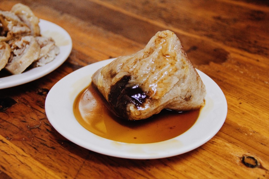 粽球外形為六角球狀,制作時先將糯米淘洗干凈,用清水浸泡6小時后,撈起放在竹篩晾干。次日下鍋用豬油炒后,加適量上等魚露,再炒至米粒晶瑩透亮、油香潤滑,用盆盛裝待用。然后用竹葉、咸草包裹扎成六角球形,放進鍋內(nèi)煮熟就可以食用了。