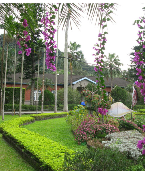 士林官邸由外而內(nèi)共分為外花園、內(nèi)花園、正房幾個區(qū)域;外花園中有溫室盆栽區(qū)及玫瑰園,據(jù)說蔣夫人最喜愛的花園;內(nèi)花園是中式庭園和西式庭園的合稱,西式庭院里的苗圃、花藝、雕塑、水池都洋溢這濃濃的西方風(fēng)情,我們那天還看見一個女子身穿和服在西式庭園中拍攝寫真集;中式庭園里的拱橋、曲池、流水等東方庭園造景,則令人彷佛置身古代中國。中西兩種風(fēng)格同時聚合在一個地方,并沒有顯得突兀和怪異,卻有種別樣的美。從這里可以看出蔣介石和宋美齡各自的喜好和風(fēng)格,一個完全西化的知性女子和一個仍然殘留著封建思想的軍閥官僚的結(jié)合,卻猶如這花園般令人驚異地和諧。