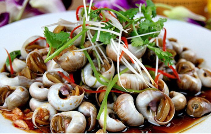 小香螺是盤(pán)錦土特產(chǎn),是我國(guó)特有的海螺品種,主要分布在黃海和渤海的北部,香螺是世界上較稀有的海螺品種。將買(mǎi)來(lái)的香螺放入水中,加些鹽水吐沙2小時(shí),然后清水沖干凈,鍋里放水、姜片、蔥結(jié),煮開(kāi),放入香螺、鹽、味精重新煮,煮開(kāi)后起鍋,放調(diào)味醬油適量、酸醋、姜末、味精、芥末調(diào)好,肉味鮮香,新鮮爽口。