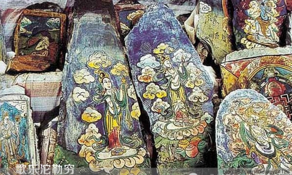 再往上走便是空行母的秘密住所。住所由大小4個溶洞組成,棱形排列,大者可容30人,小者1人可曲腰而入。洞壁上刻有各色壁畫和佛像,經(jīng)洞中流水的反照,給溶洞籠罩上一層神秘的面紗。山正面巖壁處顯有古孟加拉文、梵文字母等字樣,山腰有一處七金剛拉龍花多住過的房跡。