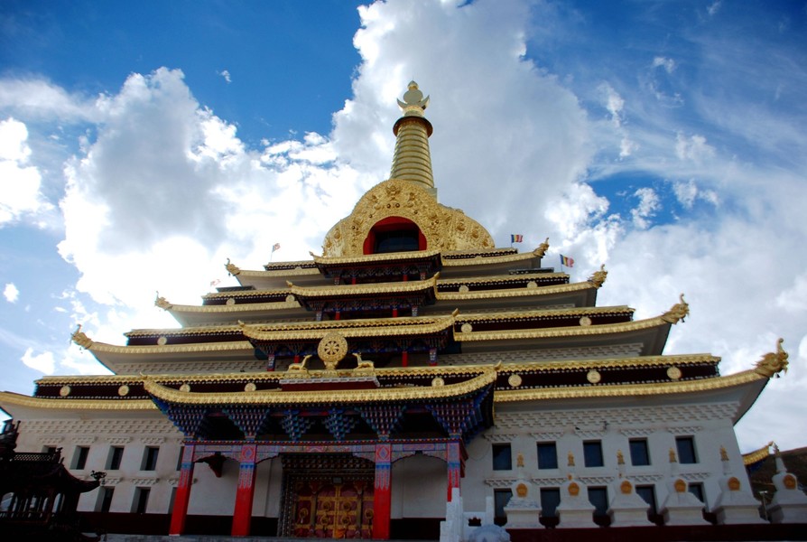 東嘎寺是藏區(qū)著名的紅教寺廟,被列為色達三大寺廟之一。坐落在一座形似白色海螺的神山上,殿堂內(nèi)塑有釋迦牟尼坐像一尊,三面繪有宗教壁畫,紅柱上雕龍刻花,色彩艷麗奪目,氣氛莊重肅穆。寺院每年都舉行各種大小法會,尤其在三月初一至初十舉行的蓮師祈愿大法會期間,僧眾誦經(jīng)祈愿世界和平、眾生安樂,并進行表演藏戲、跳金剛舞等佛事活動,盛況空前,游客也可在此參觀感受。