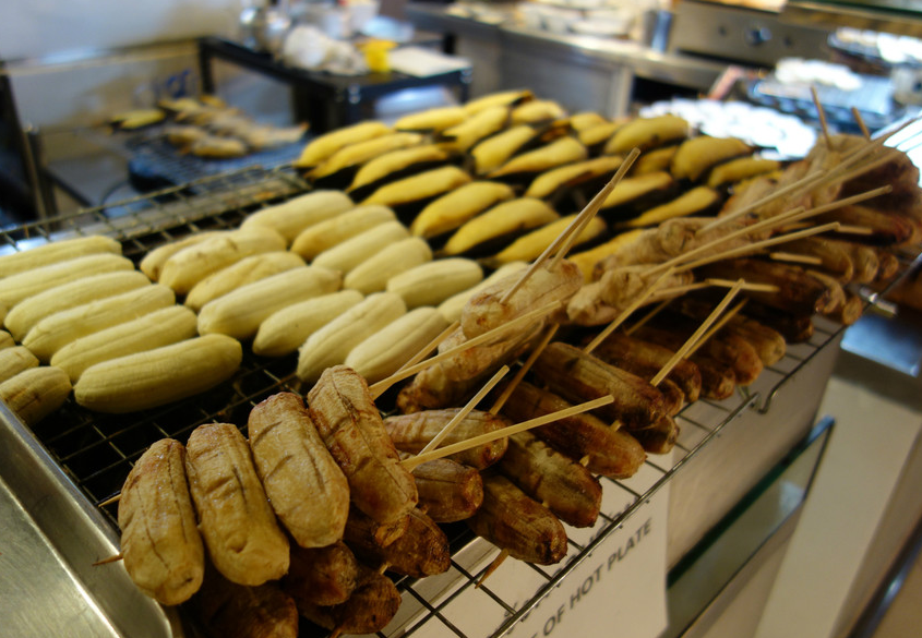 在泰國幾乎什么都可以拿來烤,其中烤香蕉是比較特別的一種小吃。將小芭蕉烤制兩面焦黃,增加了香蕉本身的香氣,也使營養(yǎng)成分能夠被更好吸收。搭配上特制焦糖,這種泰式甜點簡直就是人間美味。