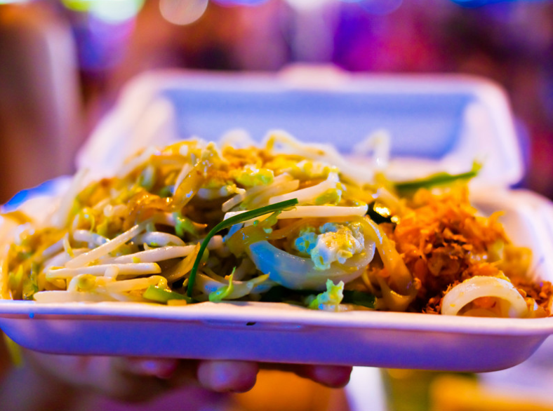 泰式炒河粉是一道小到路邊攤大到高級餐廳都會有的家常料理,更是泰國人可以從早餐吃到晚飯的一道美食。軟糯彈牙的河粉搭配蒜、紅蔥頭(都是碎末)、腌的有點甜的菜頭末、豆干、蝦、蛋、花生米、蝦米、豆芽、細香蔥(或用韭菜)等十多種材料,快速煸炒幾下,這道泰國國民美食便出鍋了。