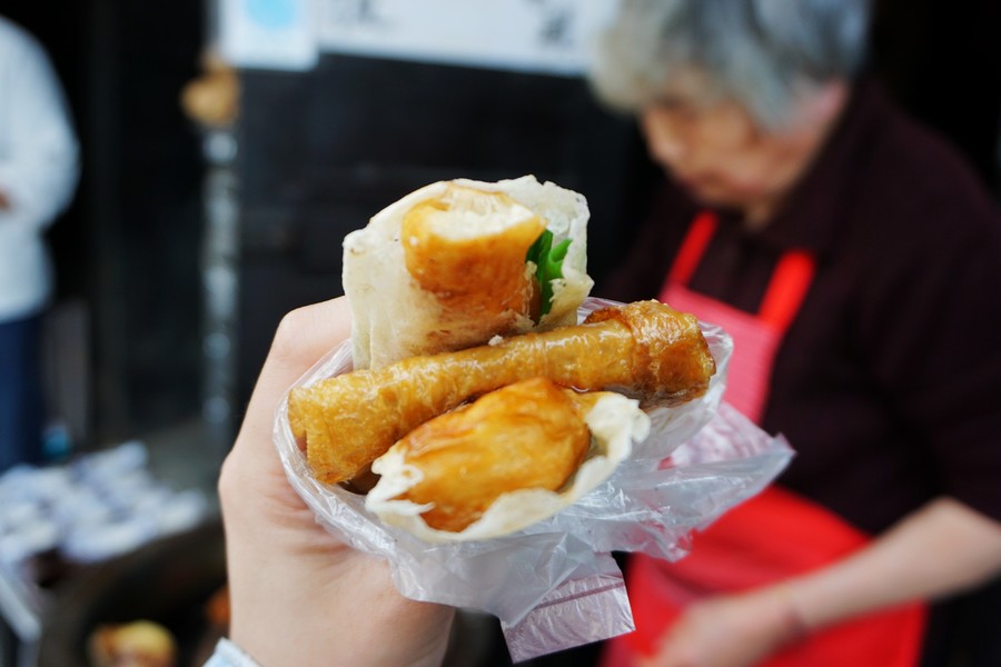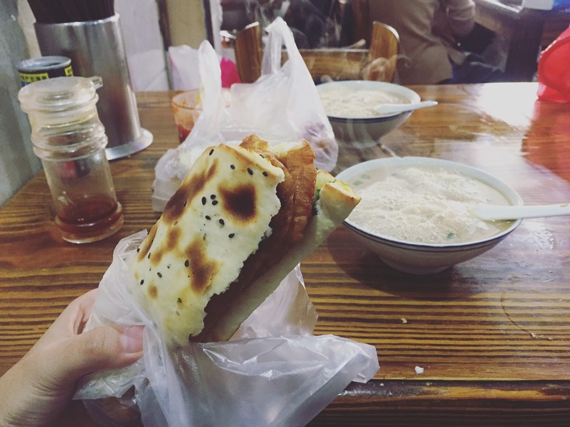 這是一家傳統(tǒng)早飯店,可以體驗(yàn)杭州早三樣:豆?jié){、油條、燒餅。咸豆?jié){是這里的招牌特色,由蔥花、醬油、油條、熱豆?jié){組成,老板娘還會(huì)熱心提醒你不要攪拌!另外,這里燒餅和油條的吃法也很獨(dú)特,包在一起吃味道最佳。