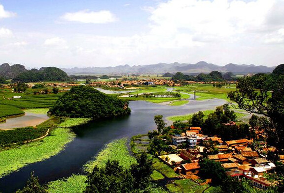 普者黑位于云南省文山壯族苗族自治州丘北縣城西北,普者黑景區(qū)內(nèi)一座座散落的孤峰間,延綿環(huán)繞著40里的水路、萬(wàn)畝野生荷花、一望無(wú)際的桃園和世界最大的巖溶濕地,被譽(yù)為“世間罕見、中國(guó)獨(dú)一無(wú)二的喀斯特山水田園風(fēng)光”。