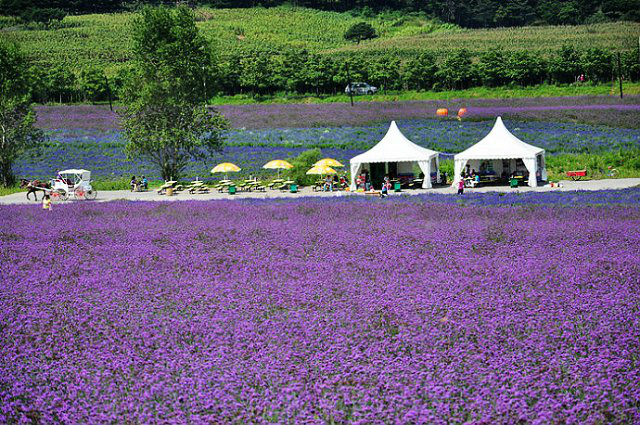 沈陽薰衣草莊園將文化創(chuàng)意與現代農業(yè)相結合,種植了薰衣草、馬鞭草、向日葵、迷迭香、百里香、波斯菊等數十種香草和花卉植物,以視覺、聽覺、嗅覺、味覺、觸覺五感深度體驗,為人們提供全新的浪漫休閑空間。園內溪水潺潺,每逢花期,薰衣草、馬鞭草、迷迭香、鼠尾草、百里香、西洋甘菊等鮮花齊放,花海連綿、花香四溢。木屋、木橋、篷屋、特色餐廳、畫廊、寫生坊等景觀錯落有致,全景展現了浪漫如普羅旺斯的花海樂土。沈陽薰衣草莊園內薰衣草的面積有150個標準足球場大小,將成為全國最大的薰衣草主題公園。