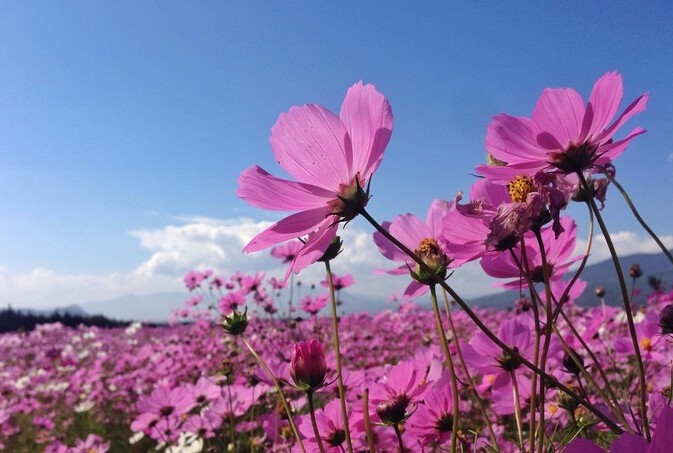 2、在伊拉草原散步,看白云從湛藍(lán)天空飄過