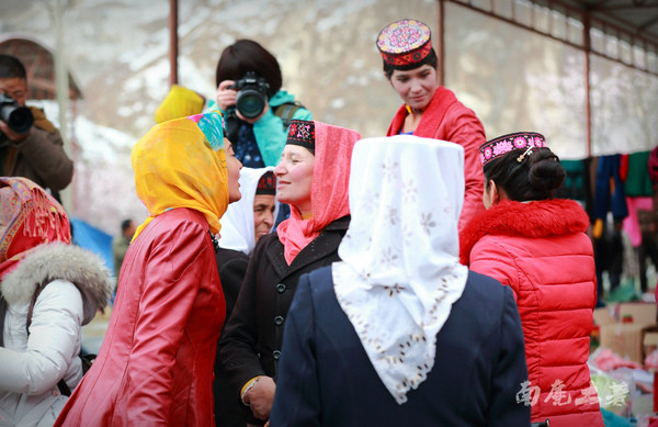 這天剛好塔縣庫克西魯克鄉(xiāng)“巴扎”(當(dāng)?shù)厝思?、趕集的稱謂),大批塔吉克人聚居到一起,他們乘巴扎期間交換物品,購買生產(chǎn)資料和生活物資。婦女們往往會(huì)穿上節(jié)日的盛裝,男人們打扮的精神抖擻,一些附近村落許久不見的親朋好友都會(huì)在巴扎上見面,于是打招呼、寒暄此起披伏,熱鬧非凡。