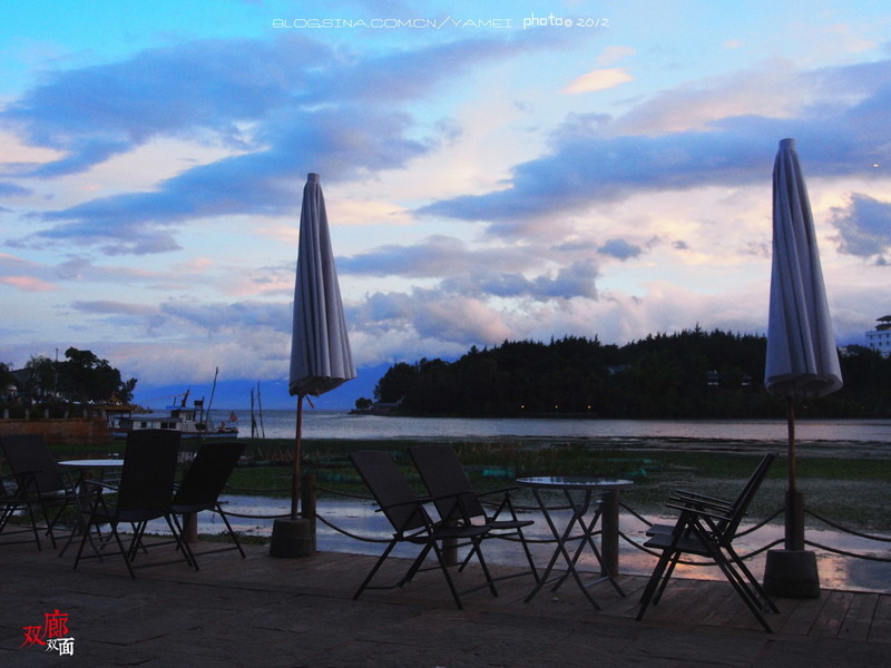 當(dāng)?shù)厝嗽卺烎~,外地人在打情罵俏看海曬太陽,白族姑娘淳樸地傻傻沖你樂,客棧風(fēng)光可以一一品嘗的時候,不知道有誰還會不愛她。這里的天空可以是粉紅色,這里的晚霞絢麗奪目,朝華夕陽,傍海而居,遠處的蒼山盡收眼底。