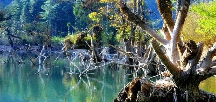 很難想象,恩施州武陵山崇山峻嶺中竟隱藏著一處絕世的奇異風景。董家河因董家村而得名,蜿蜒碧綠的河水逶逸四千多米,卻猶如一個美麗的土家族女子一般裊娜多姿。董家河中的樹非常神奇,三三兩兩深植于水中的老樹,新綠滿枝,分明就是栽在水中的盆景,“樹在水中生、水在樹中流”。