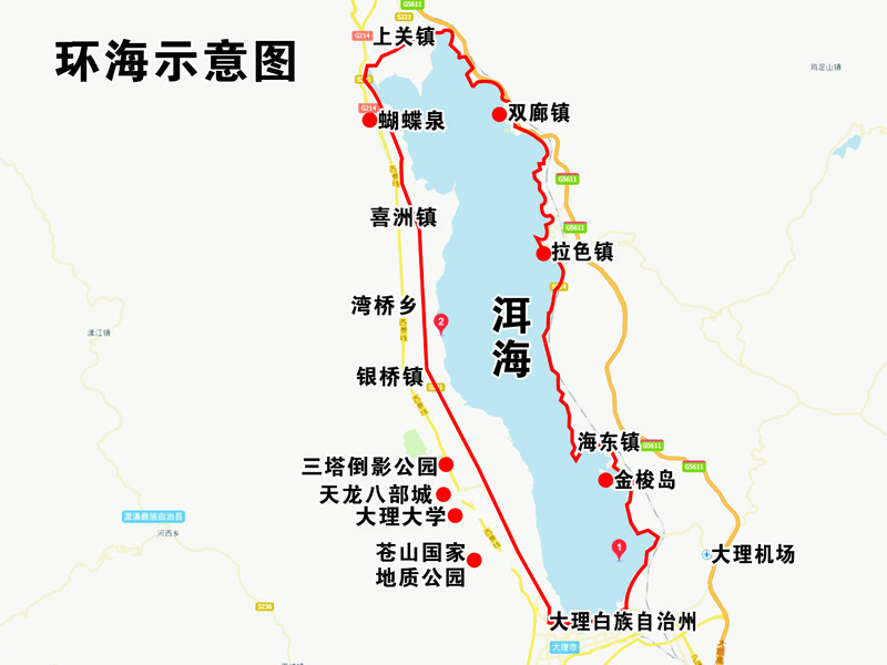 環(huán)洱海一天騎行路線圖主要節(jié)點