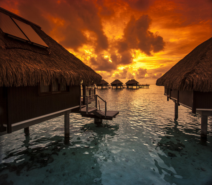 水上屋首推波拉波拉島。大溪地最美的,水質(zhì)最好的海域就在這里。但注意最美的風(fēng)景要住環(huán)礁上才能體驗到。只有環(huán)礁可以看到神山。大溪地明信片上的風(fēng)景基本都出自這座神山,所以這里的水上屋越是能看到山景的,房價越貴。波拉波拉有眾多世界頂級酒店以及奢華度假村。