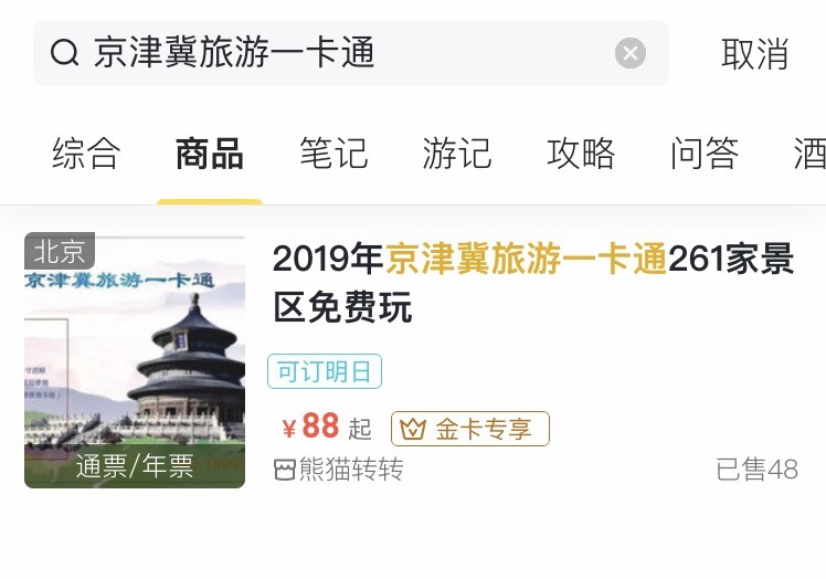 搜【京津冀旅游一卡通】線上購買只要88元,先到先得哦!