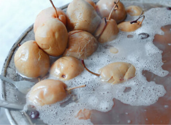 冬果梨在蘭州有著幾百年的栽種歷史,肉質(zhì)鮮嫩,皮薄多汁,9月收獲,可貯藏到次年6月份,色味不變,具有清心潤肺、潤喉消痰、降火止咳的功效。蘭州人多在冬季把冬果梨掏空去核,再裝入蜂蜜、冰糖煮熟,連湯帶果食用,稱為熱冬果。